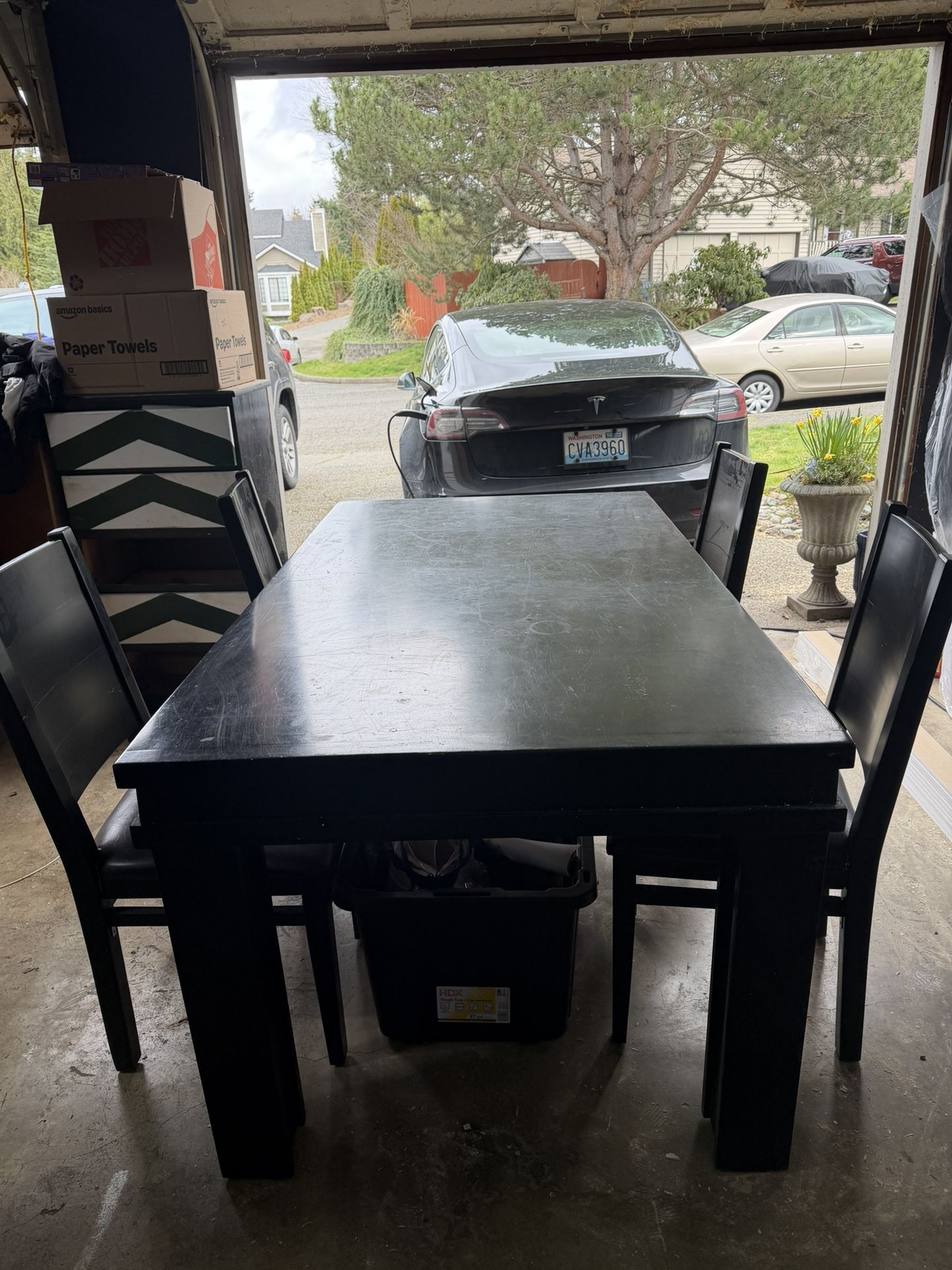 It heavy, custom made. 4-6 chairs. Also extends. My boys did art work on it. NO HOLDS