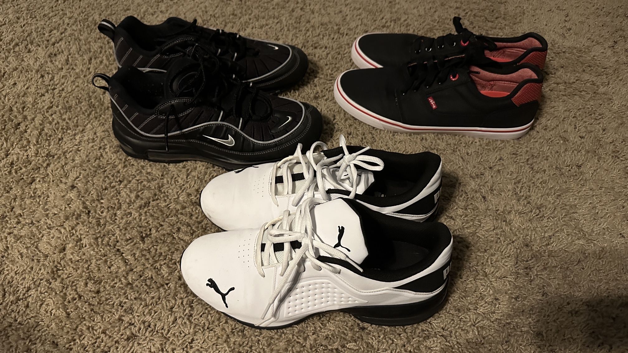 Bundle of shoes all men’s size 11 Nikes like new $75 Pumas $30 Levi’s $20 Pick up today southside of Holland Mi and prices reasonably listed so non negotiable. Thanks for looking!