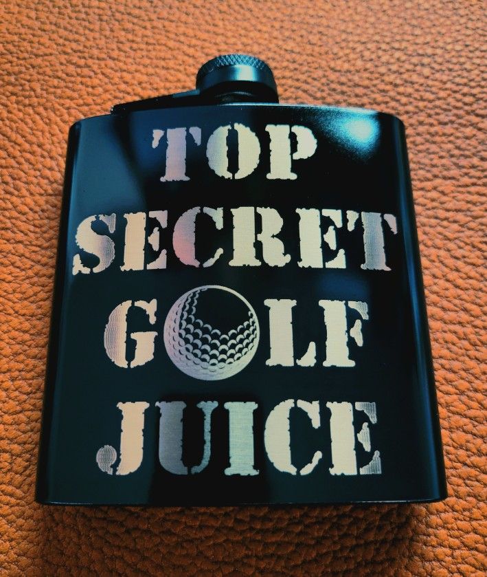 Laser engraved Matte Black 6oz Stainless Steel Flask with funnel. Can do any just about any design you want.