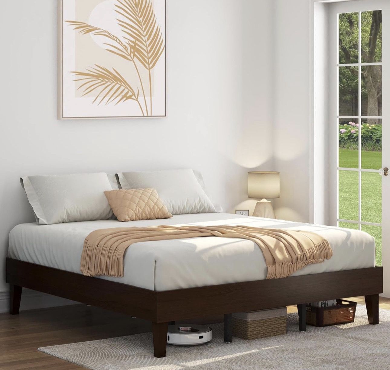King sized bed frame / wooden bed frame / minimalist bed frame / dark walnut bed frame