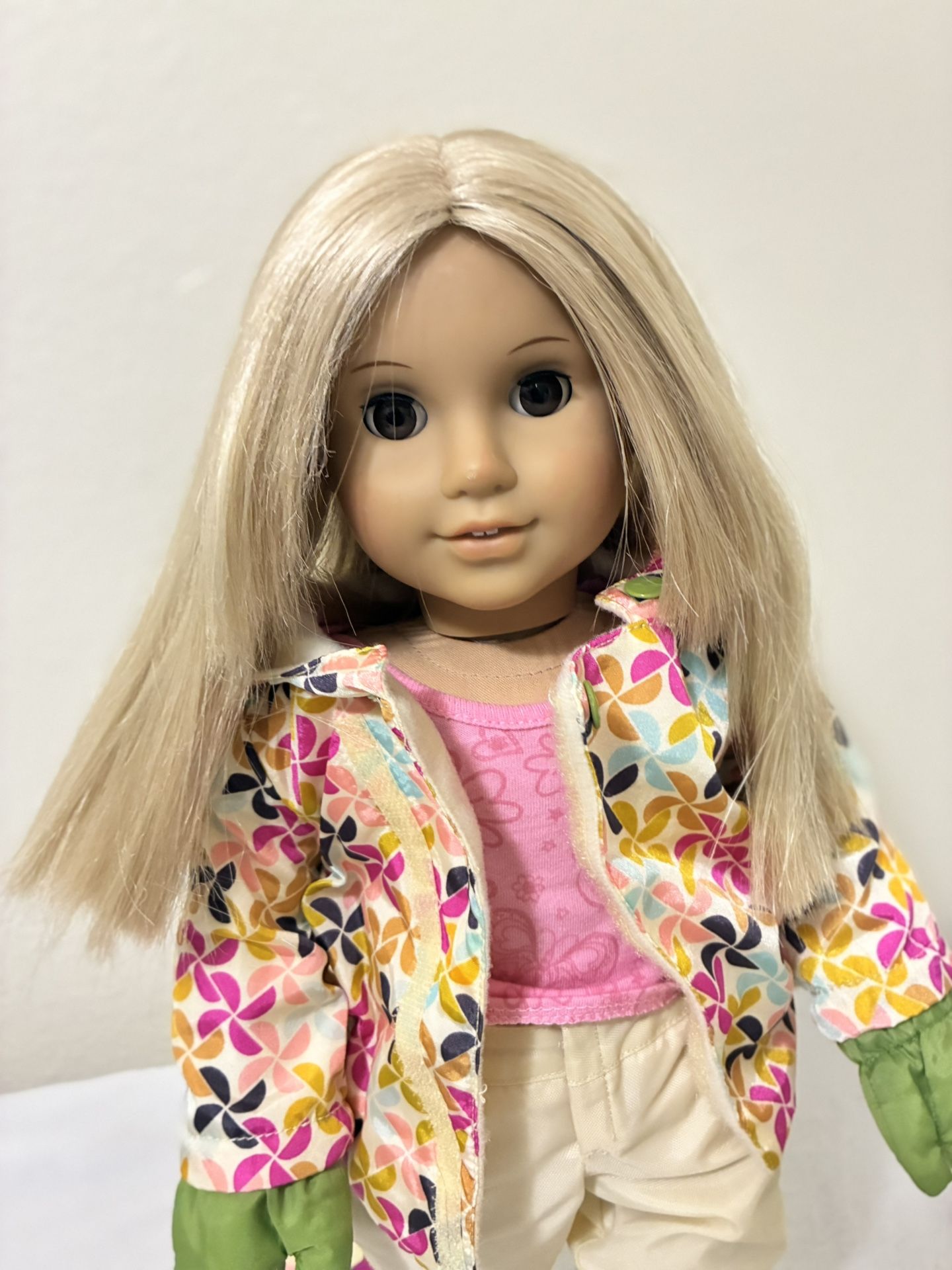 American Girl Truly Me doll with the complete snowboard accessory set. She comes with her snowboard, boots, helmet, goggles, snow jacket, snow pants, socks, and a shirt. Everything is in like new condition Great bundle for collectors or winter-sports fans!
