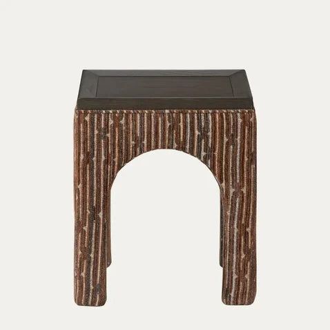 In both curve and line, this accent table seamlessly blends strength and softness. Ideal for cocktail parties, it combines style and functionality effortlessly. With a luxurious Dark Brown finish, oak veneer tray top, wrapped in earthy orange and brown hues, it exudes designer sophistication.