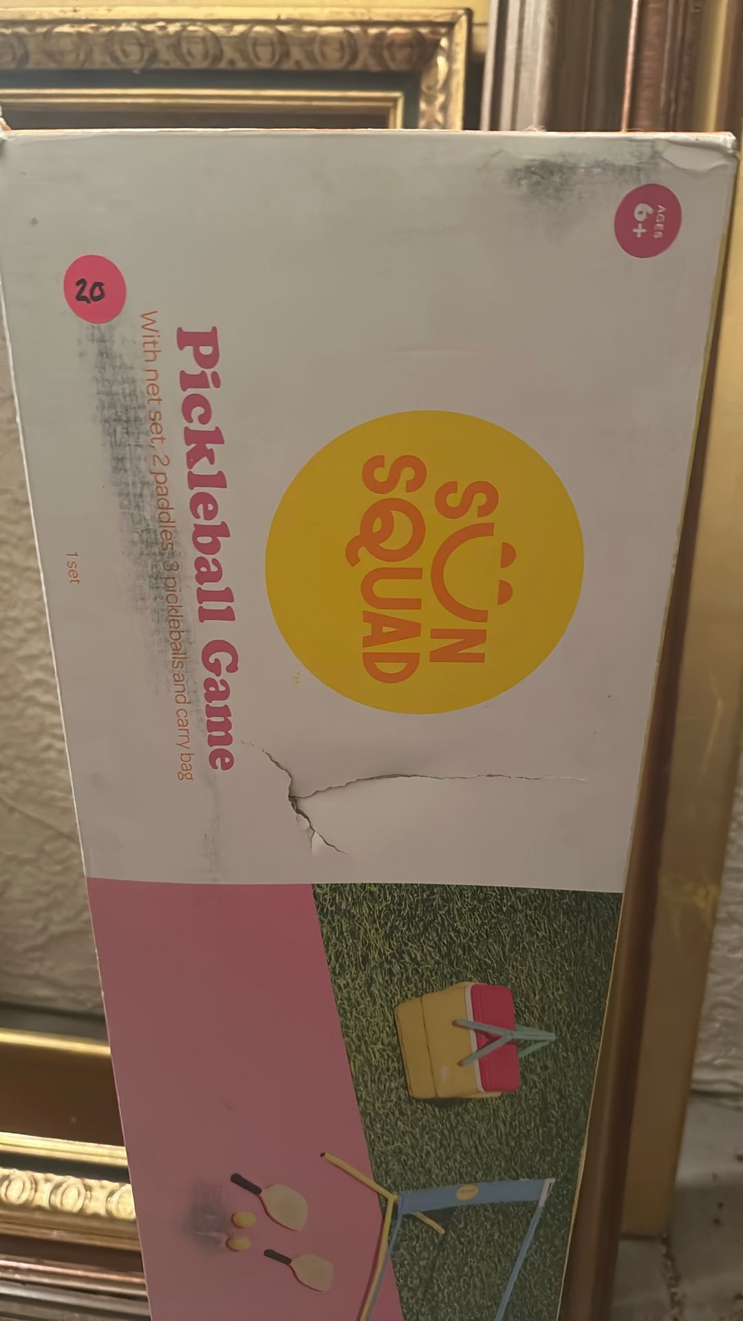 Boxes is slightly damaged. Never been used.. This is to set up a Pickleball game in your yard..