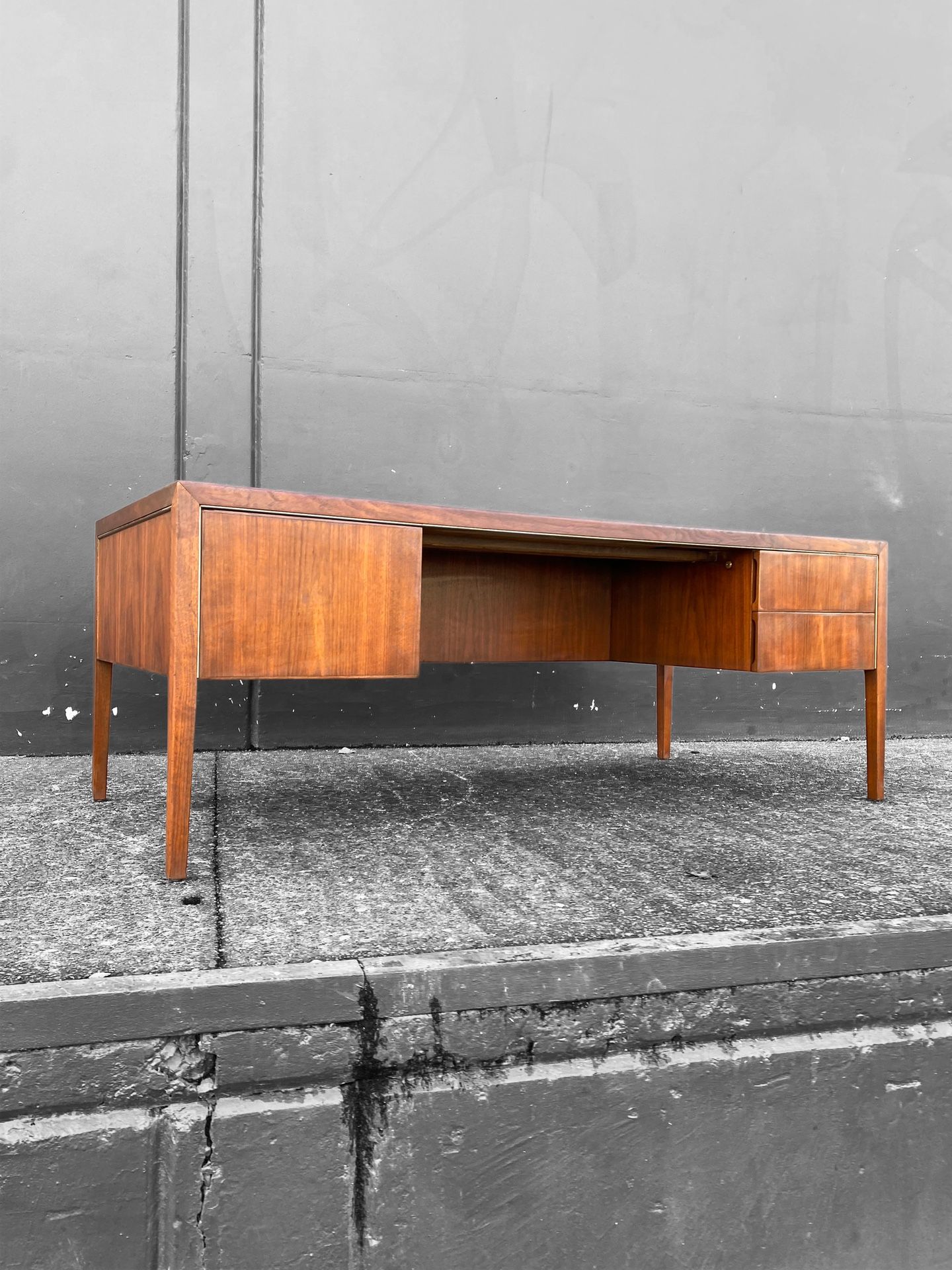 1970’s Mid Century Modern Walnut And Aluminum Desk By Alexis Yermakov for Stow Davis