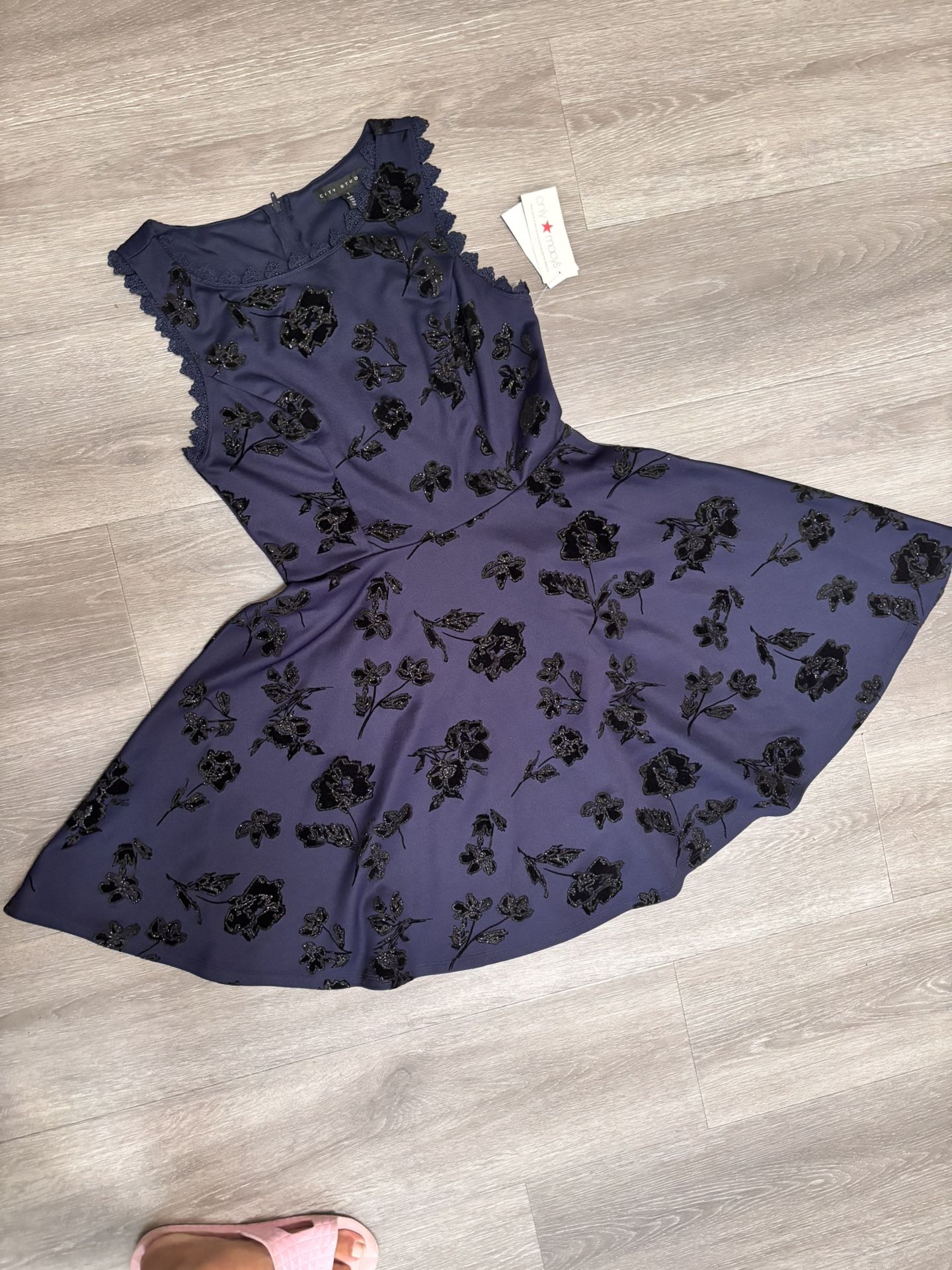 A Macy's designer dress. It's a unique design from the designer's sample collection. It's so good, I don't have to wear the same thing as everyone else. Haha. Measurements: dress length, waist, and chest (all measurements are shown in the pictures). Pick up at Rowland Heights Cash only. Thanks.