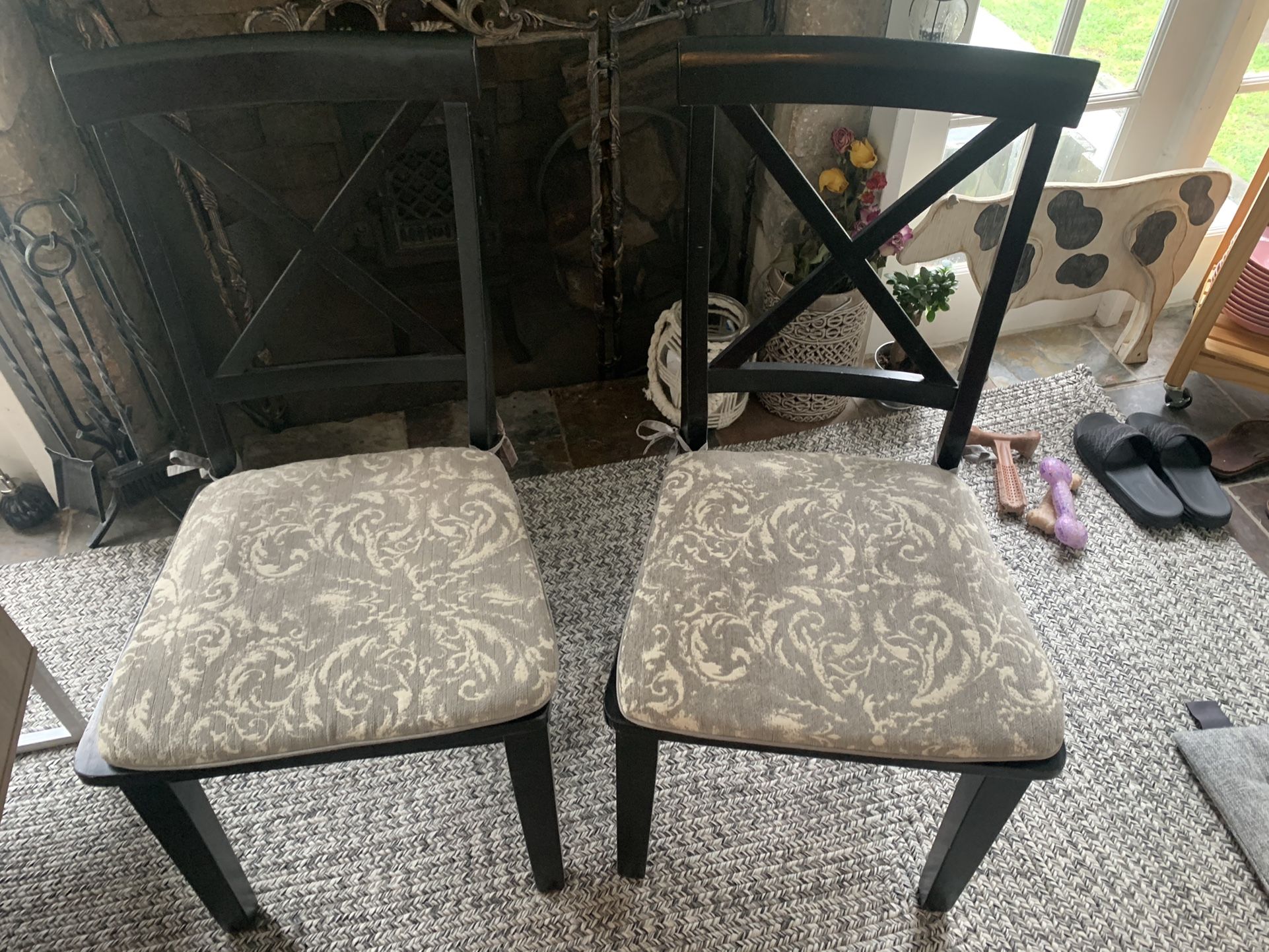 Set Of Two Black Dinning Chairs With Pier One Cushions