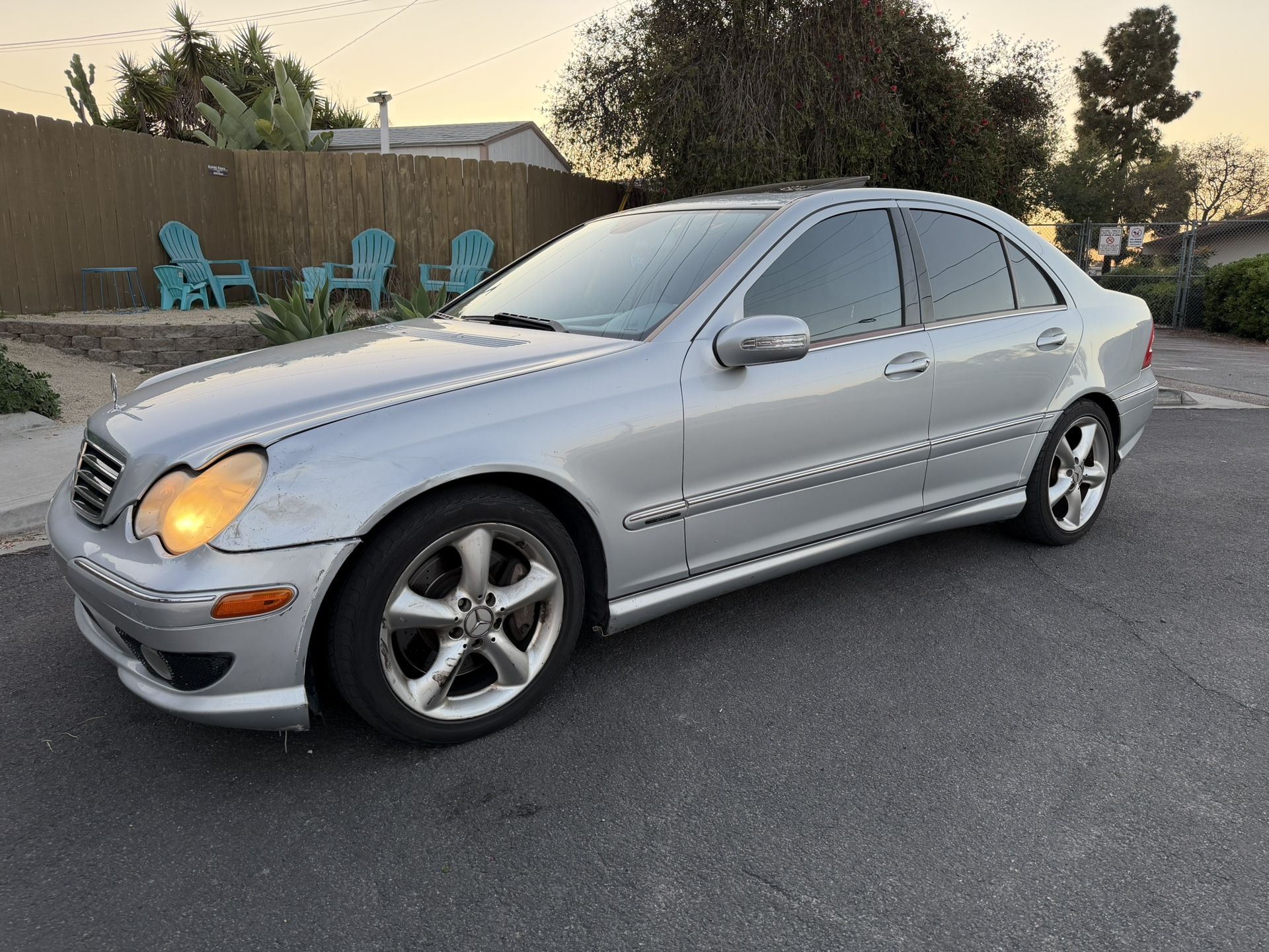2006 Mercedes-Benz C230 Sport • Salvage title, in hand • Passed smog test today with no issues • Current registration valid through November 2026 • 174,306 miles • Cold A/C and warm heater system • Power windows, power locks, power mirrors • Smooth automatic transmission • Bose stereo system • Recent maintenance: vacuum hoses replaced, oil change, four semi-new tires • Drive belt tensioner replaced • Idler pulley replaced • 140k mile service completed • Front brakes replaced • Carfax report in hand, showing all recent maintenance records and verified mileage