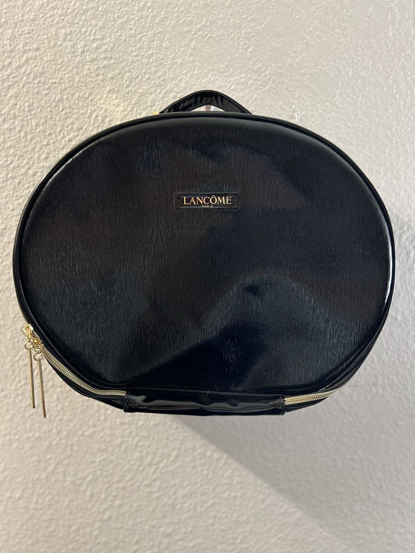 Lancome Paris Women's Black Patent Vegan Leather Travel Make Up Accessory Case