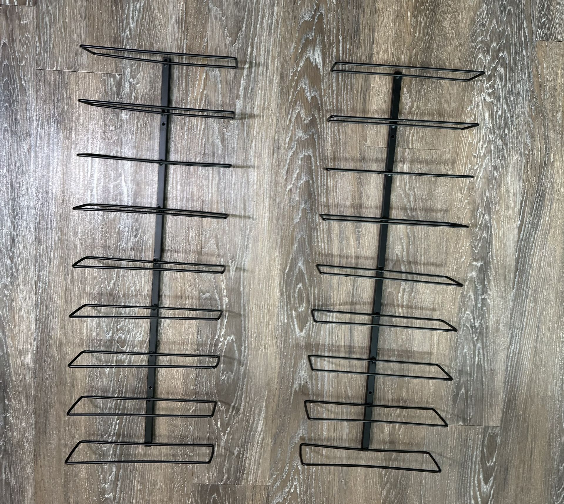 2 wine racks holds 9 bottles each. Dimensions: 29” H x 10” W x 3” D