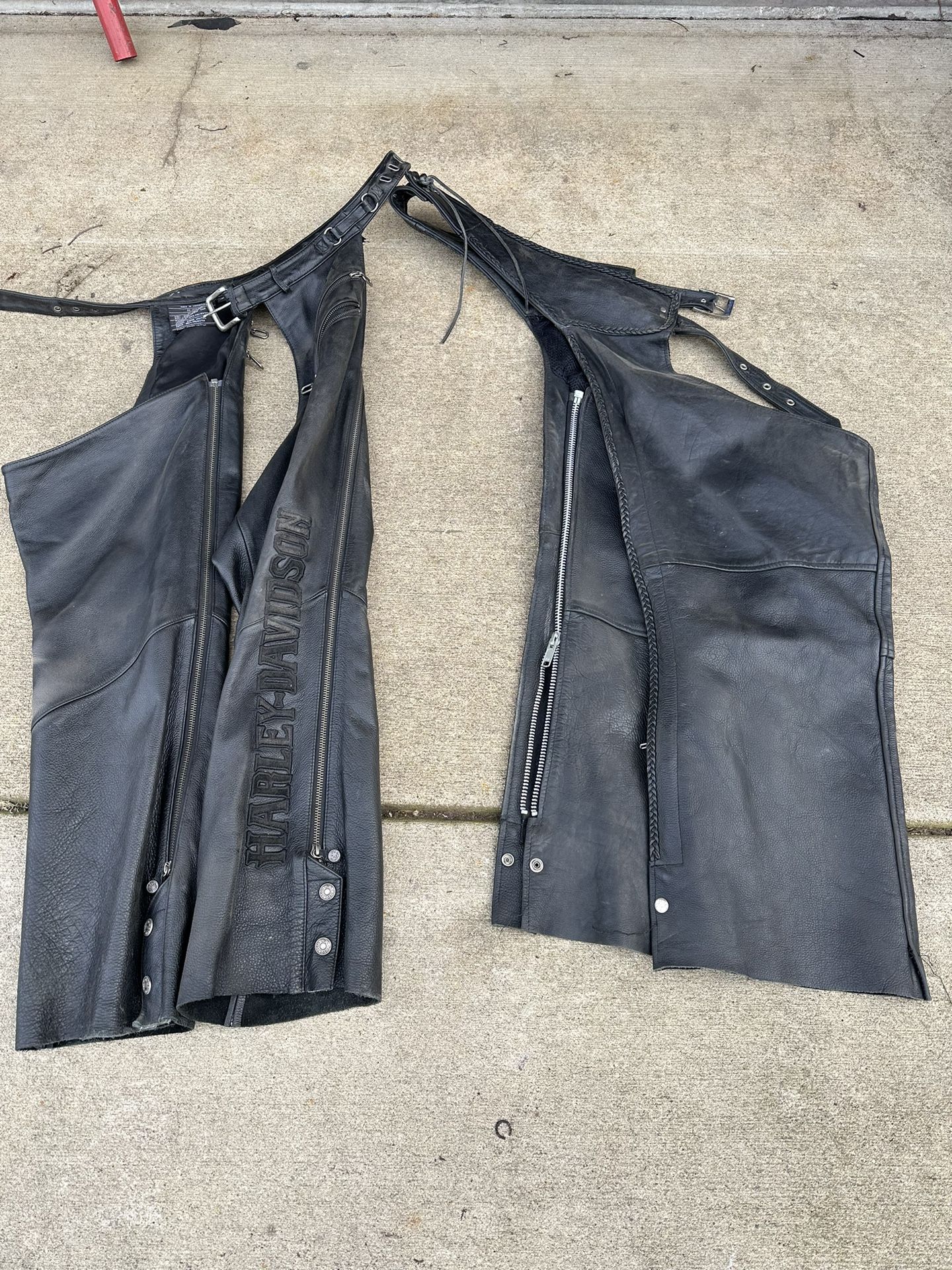 Both men and women’s leather chaps, women is Harley Davison brand men’s is pro rider brand 75each or 100 for both