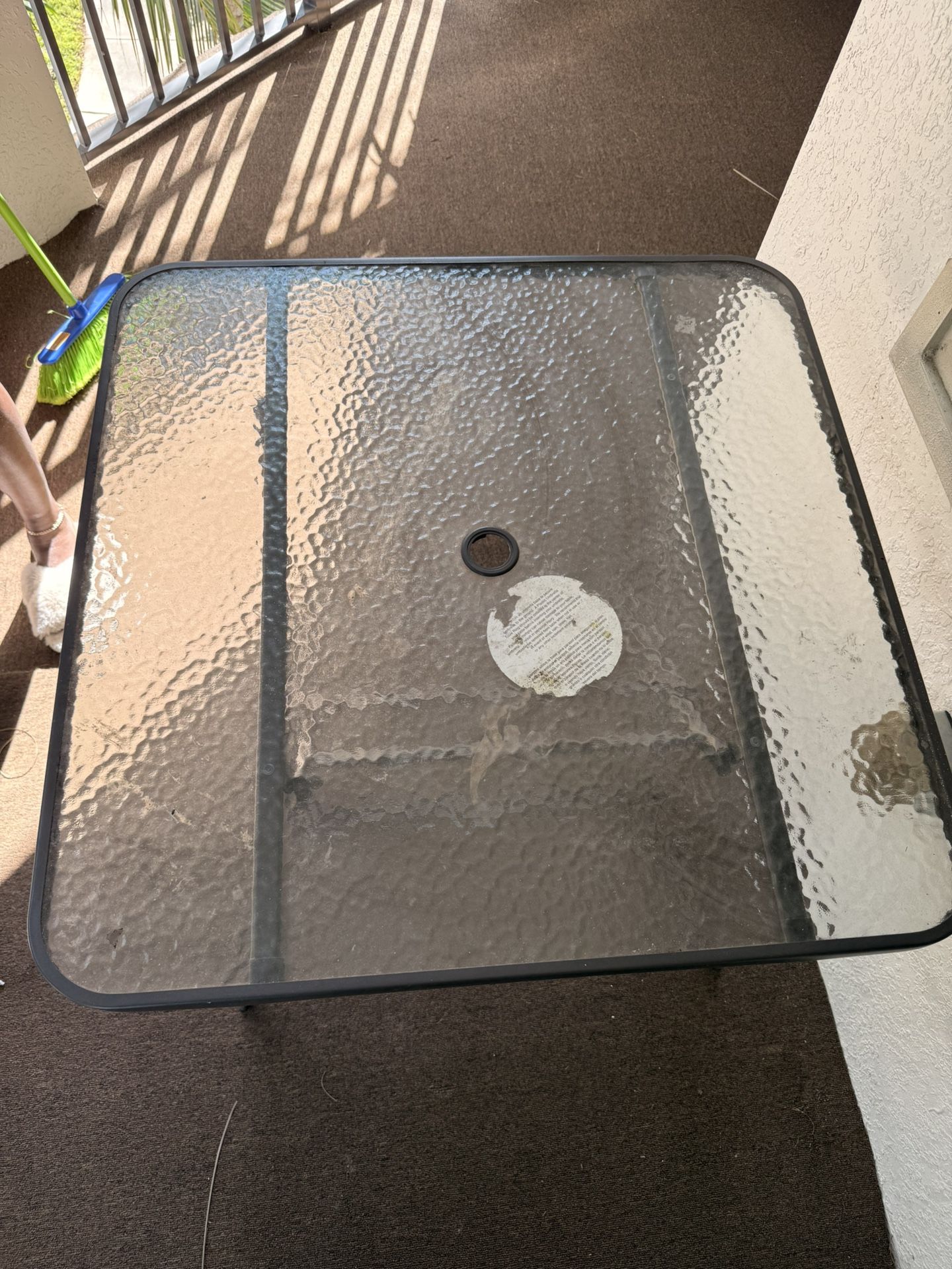 Glass table with 4 chairs.