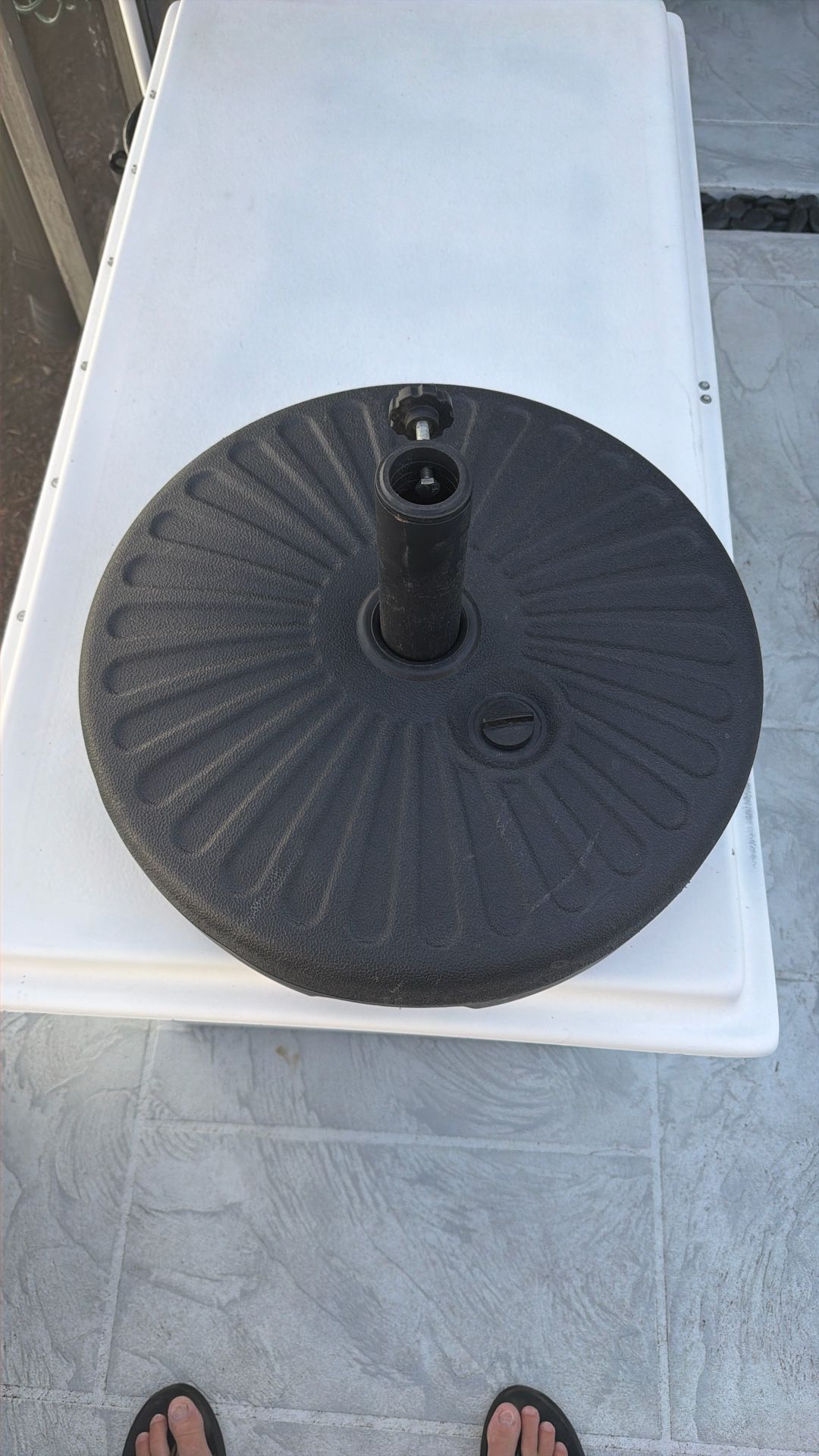 Heavy-Duty & Durable Construction Made from tough, weather-resistant HDPE plastic that resists wear, tear, aging, and moisture — ideal for outdoor use in yards, patios, and poolside areas. • Fillable for Adjustable Weight The base is designed to be filled with water (or optionally sand) to increase stability. When filled, it can reach a heavy weight (around 48.5 lbs in many versions) to help prevent tipping. • Enhanced Stability Weight from the water (or sand) helps keep the umbrella steady even in breezy conditions compared with empty stand bases. • Secure Umbrella Fit Equipped with adjustable tightening knobs that clamp down on umbrella poles to hold them firmly in place. Designed to fit common pole diameters (typically ~1.5″ to ~1.9″). • Practical Size & Design Most bases are about 20″ in diameter, providing a good footprint without taking up too much space, and come in a classic black style that blends with many outdoor decors. • Easy Setup & Portability The lightweight empty base is easy to move around; once filled with water or sand it becomes heavy enough to stabilize your umbrella. • Wide Compatibility Fits a variety of patio and market umbrellas, especially those in the mid-size range (like 7.5 ft to 13 ft umbrellas depending on model).