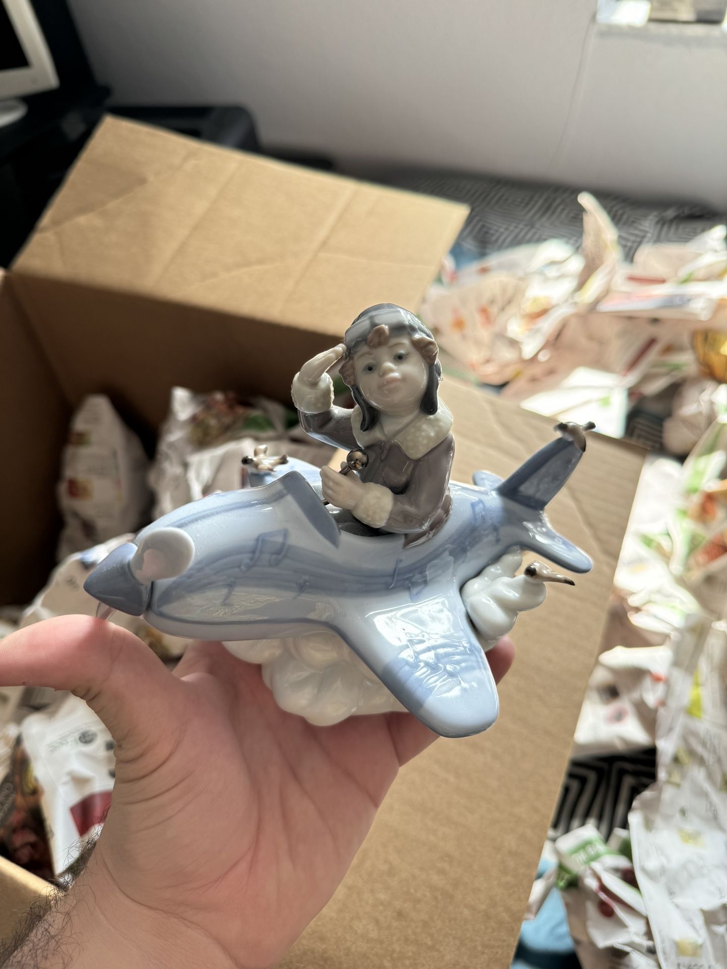 Boy in plane and taller woman both have a small chip. Message for details. Girl with flower pot is in perfect condition. Willing to cut a deal for all 3