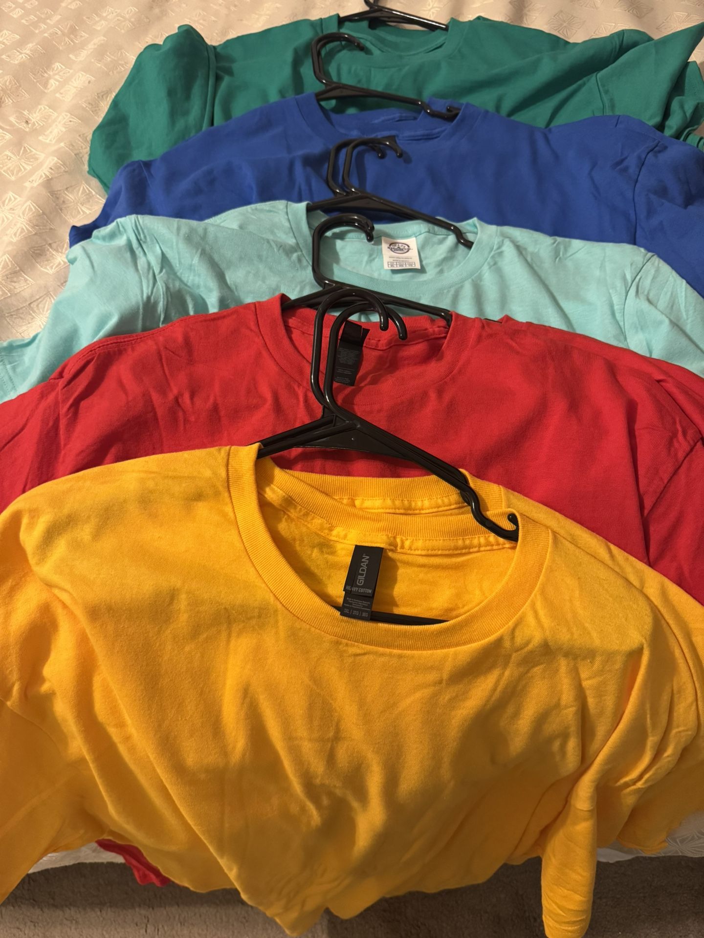 Brand new size xl. Assorted colors I have 2 of each color. Five new colors added i have a total of 18 T-Shirts. Hangers not icluded