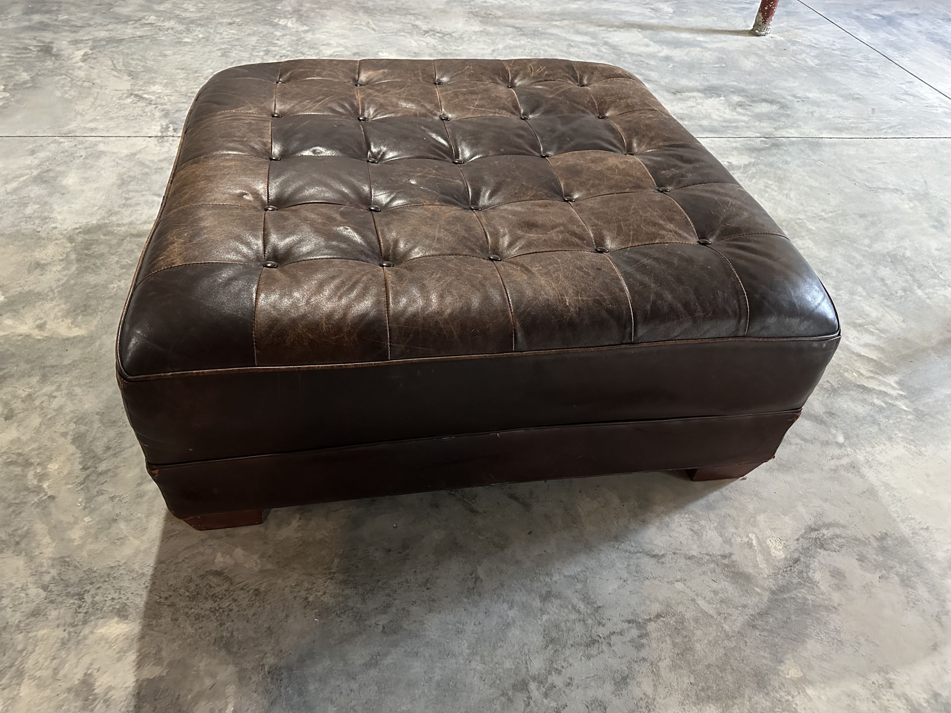 Leather ottoman for sale. Dimensions: 39”L x 39”W x 16”H