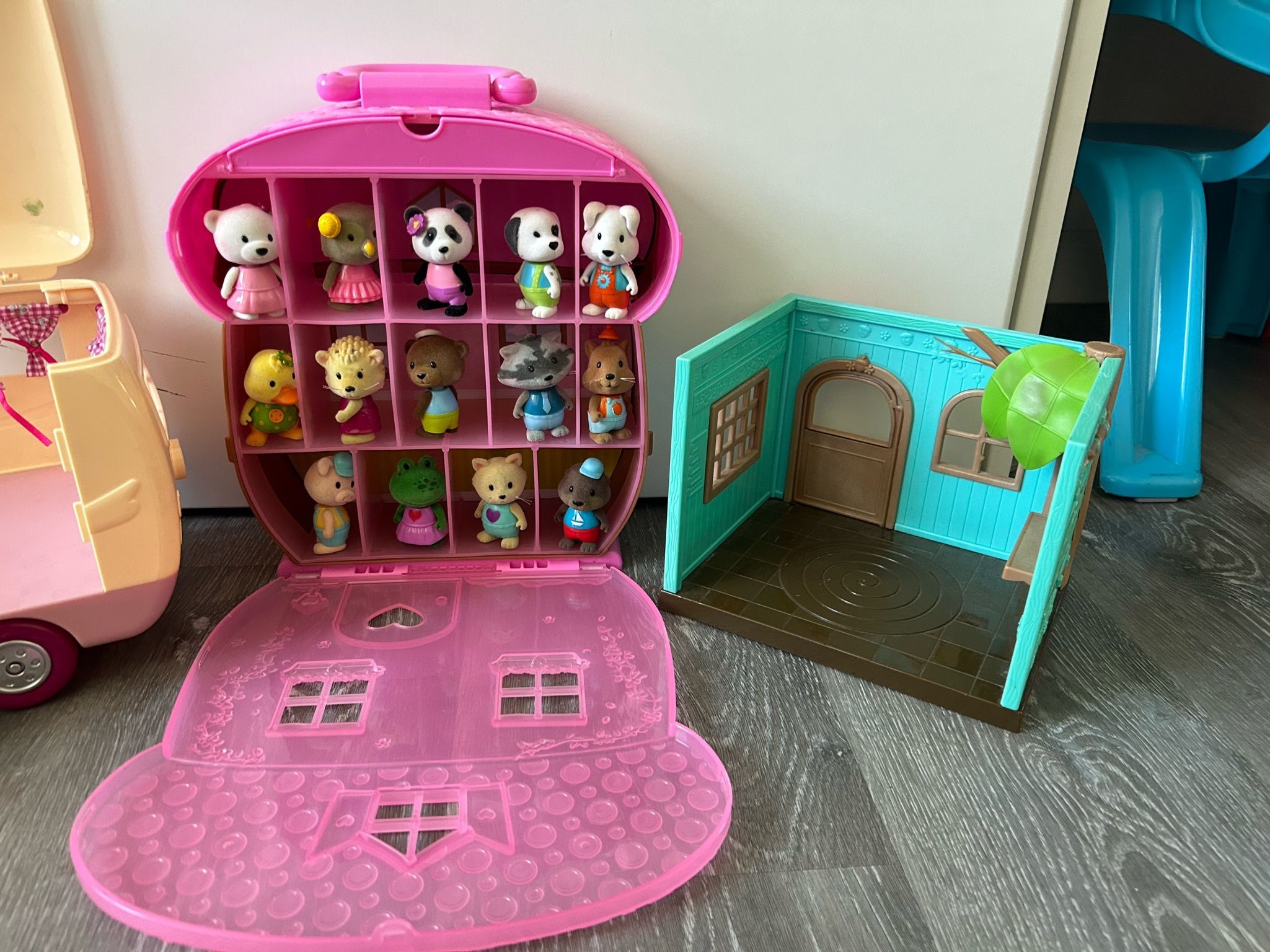 Woodeez Set - Pink House, Nurserey, and Camper Vehicle with 14 Woodeez Figures