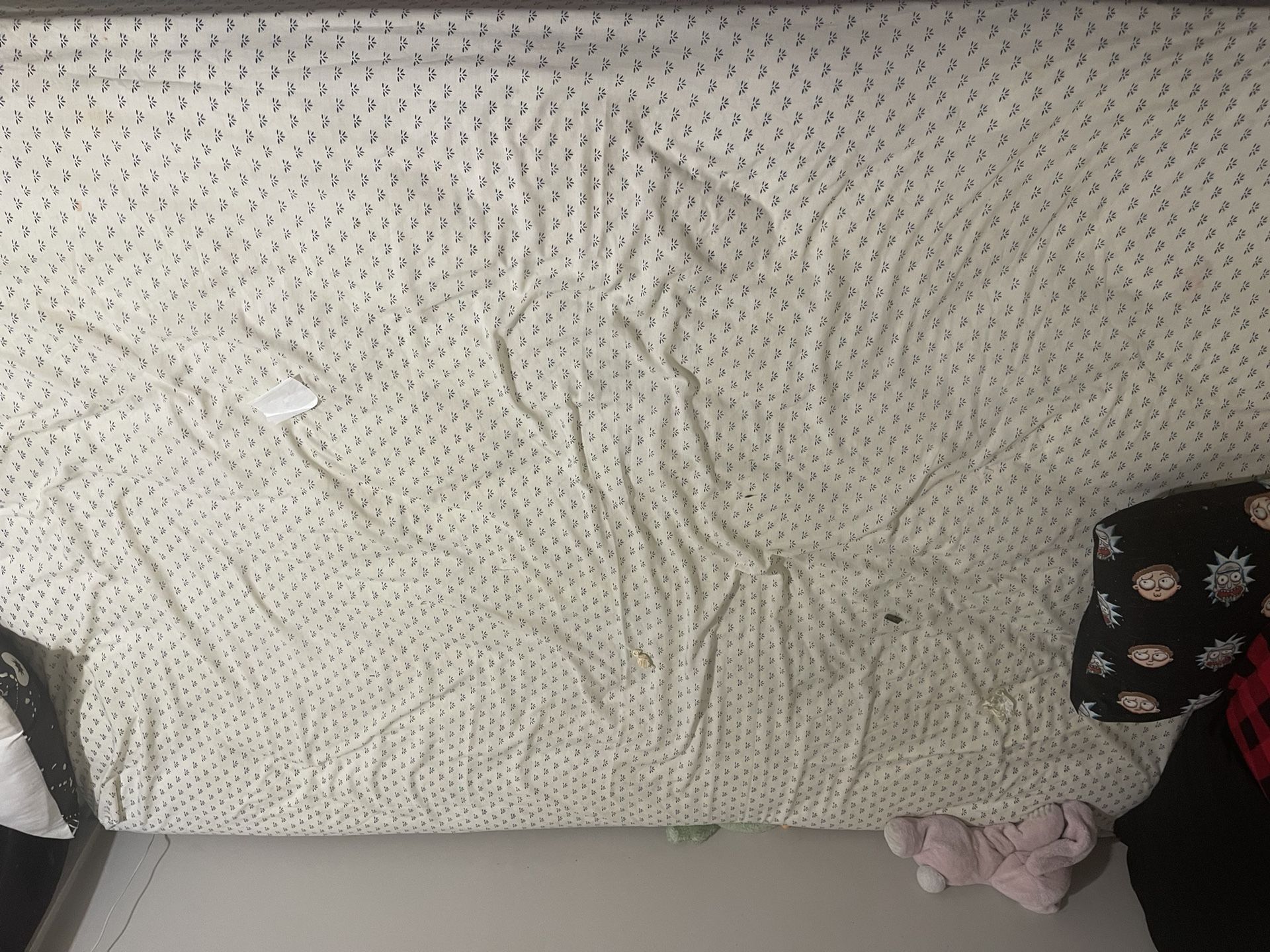 I’m selling my full size mattress and box spring because I am down sizing my bed. It is in good condition. The box spring has a few stains but I will clean the mattress and box spring before sold. I also have fitted and flat sheets as well as pillow cases that come with it. Must pickup