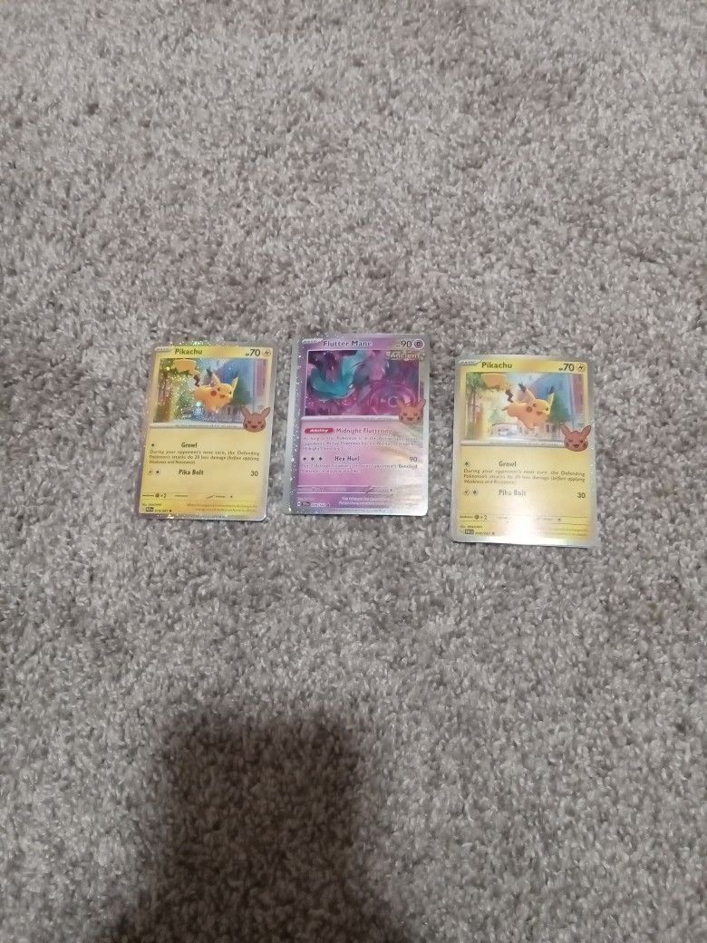 2 Pikachu Hp 70 And A Flutter Mane 90 ho . Shoot me an offer for all 3 all mint right out the pack today