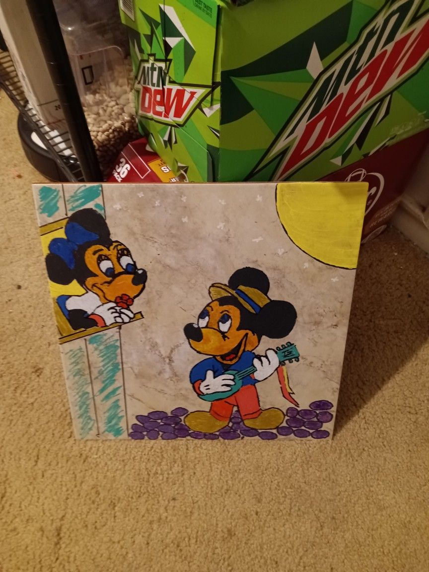 Selected characters Disney and more painted on tile 12 inch by 12 inch 13x13 and 14x14 $40 tto $60 a piece and I , do take request