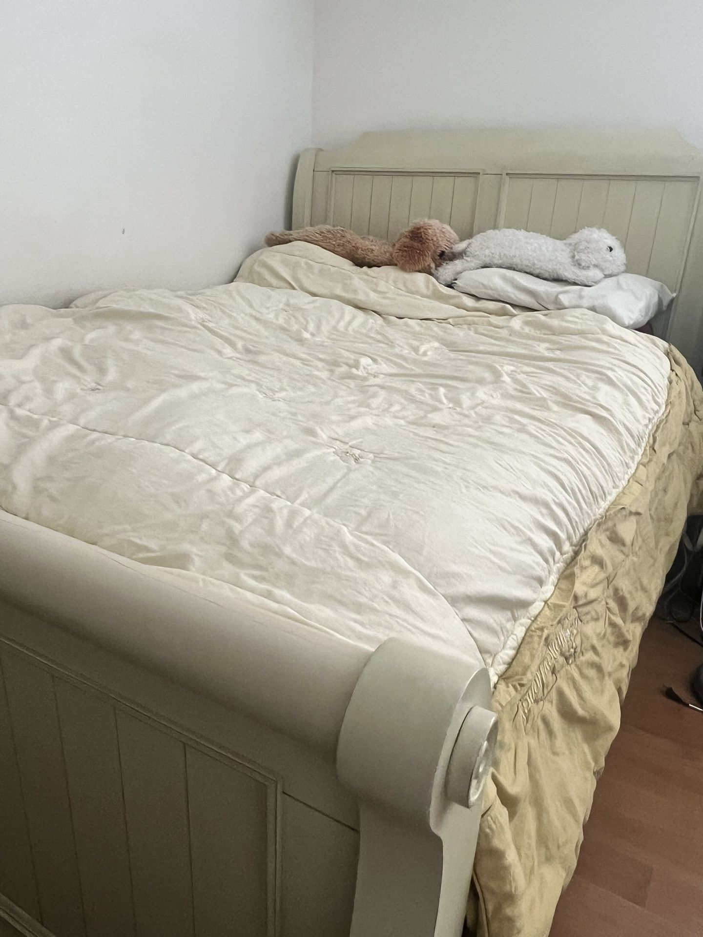 Complete queen size bed set including mattress, box spring, and bed frame. Comfortable and ready to use — perfect for a bedroom setup without needing to buy pieces separately. PICK UP ONLY