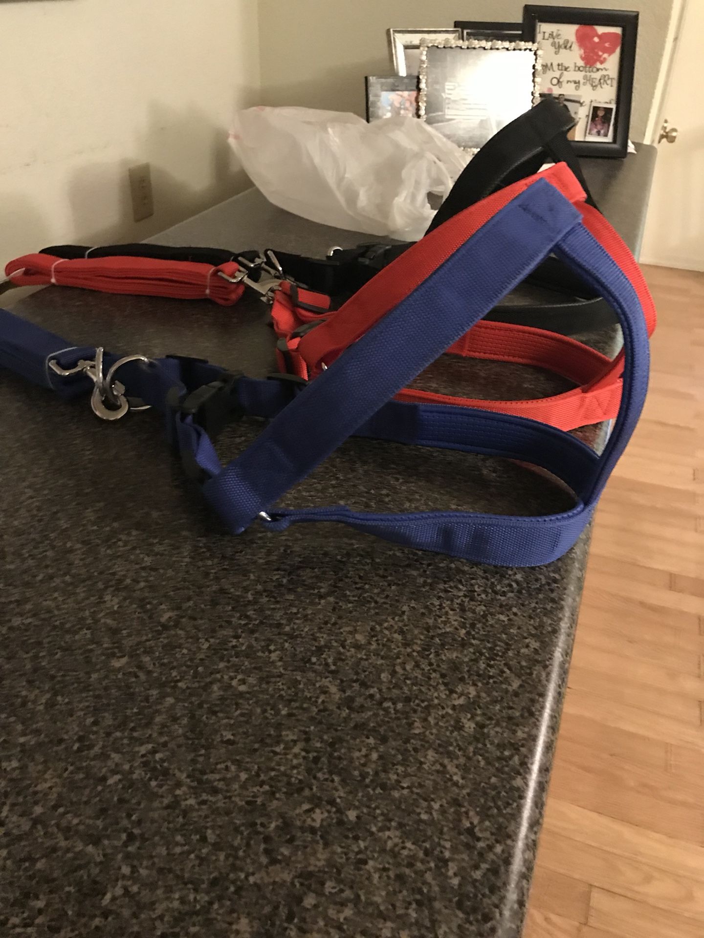 Brand new dog harness and leash set, holds up to over 100 pound dog. Very thick and strong, also have a comfort pillow top so won’t irritate the dog.