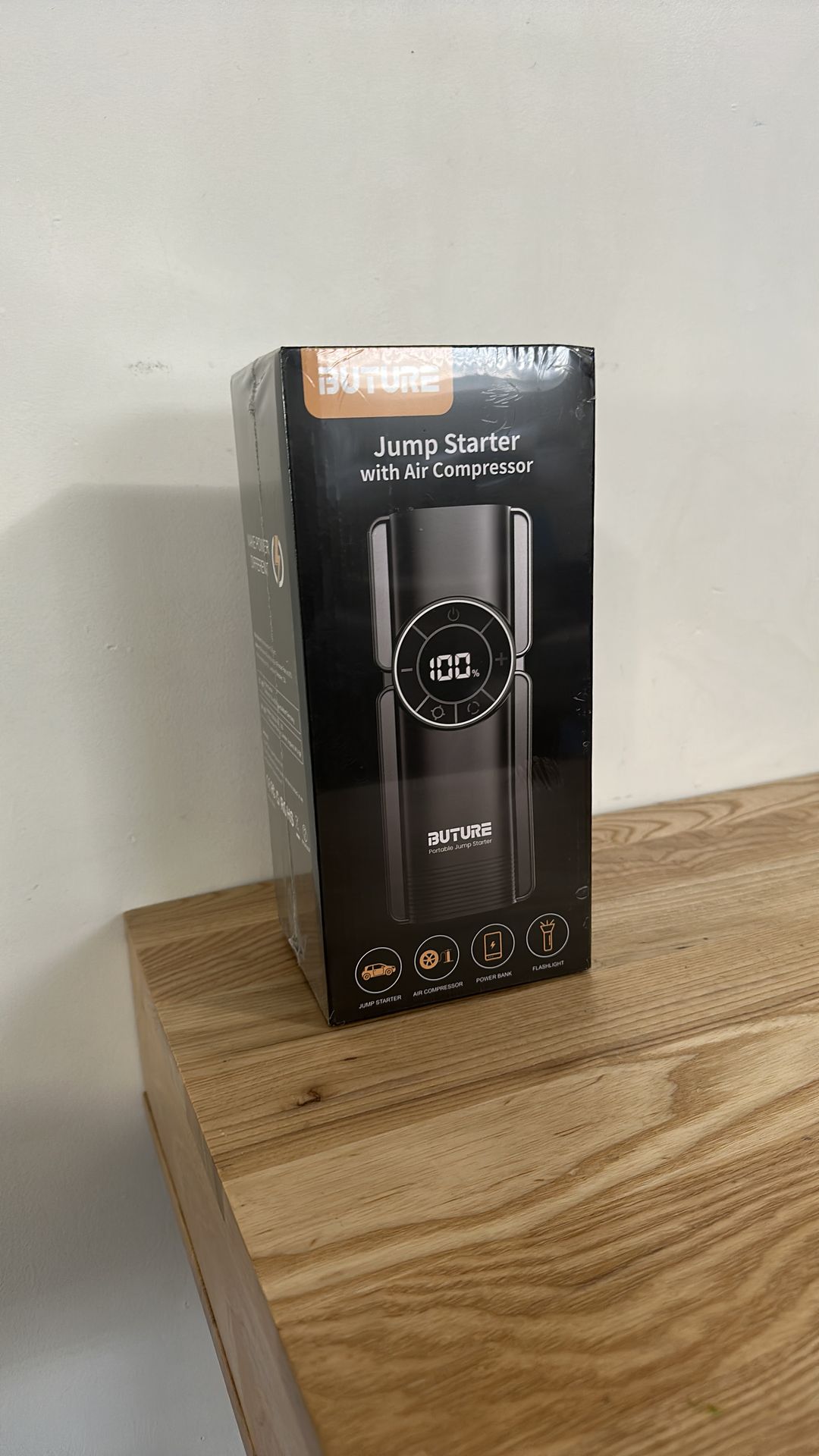 Buture 【5 in 1】Portable Car Jump Starter with Air Compressor 150PSI, 8.0L Diesel Fuel, 25-Cylinder Digital Tire Inflator, Emergency Light, 3-in-1 Car