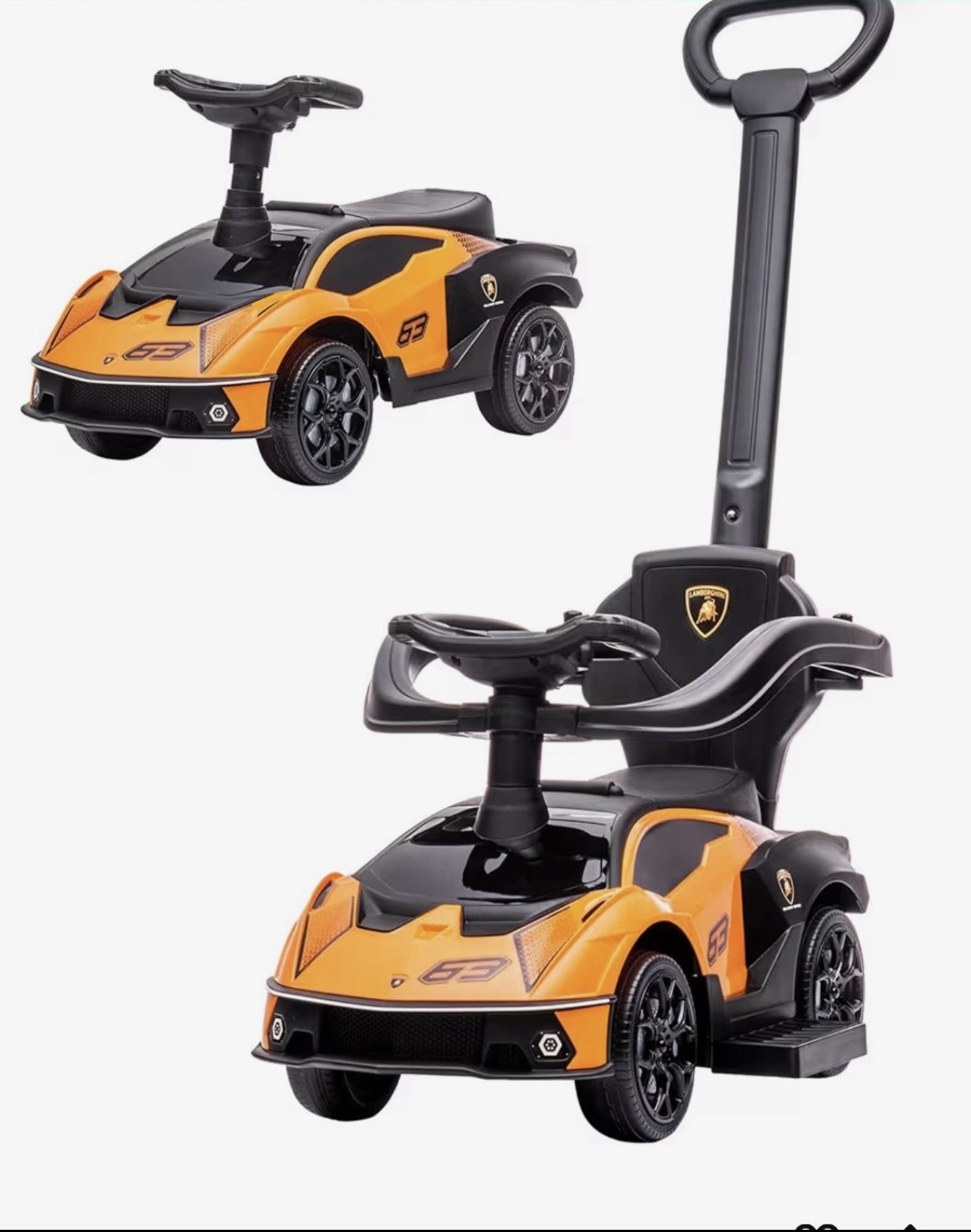 INFANS 3 in 1 Ride on Push Car, Licensed Lamborghini Baby Stroller Sliding Walking with Parent Control Handle, Music, Headlight, Under Seat Storage, Kids Foot-to-Floor Toy for 18-60 Months (Yellow)