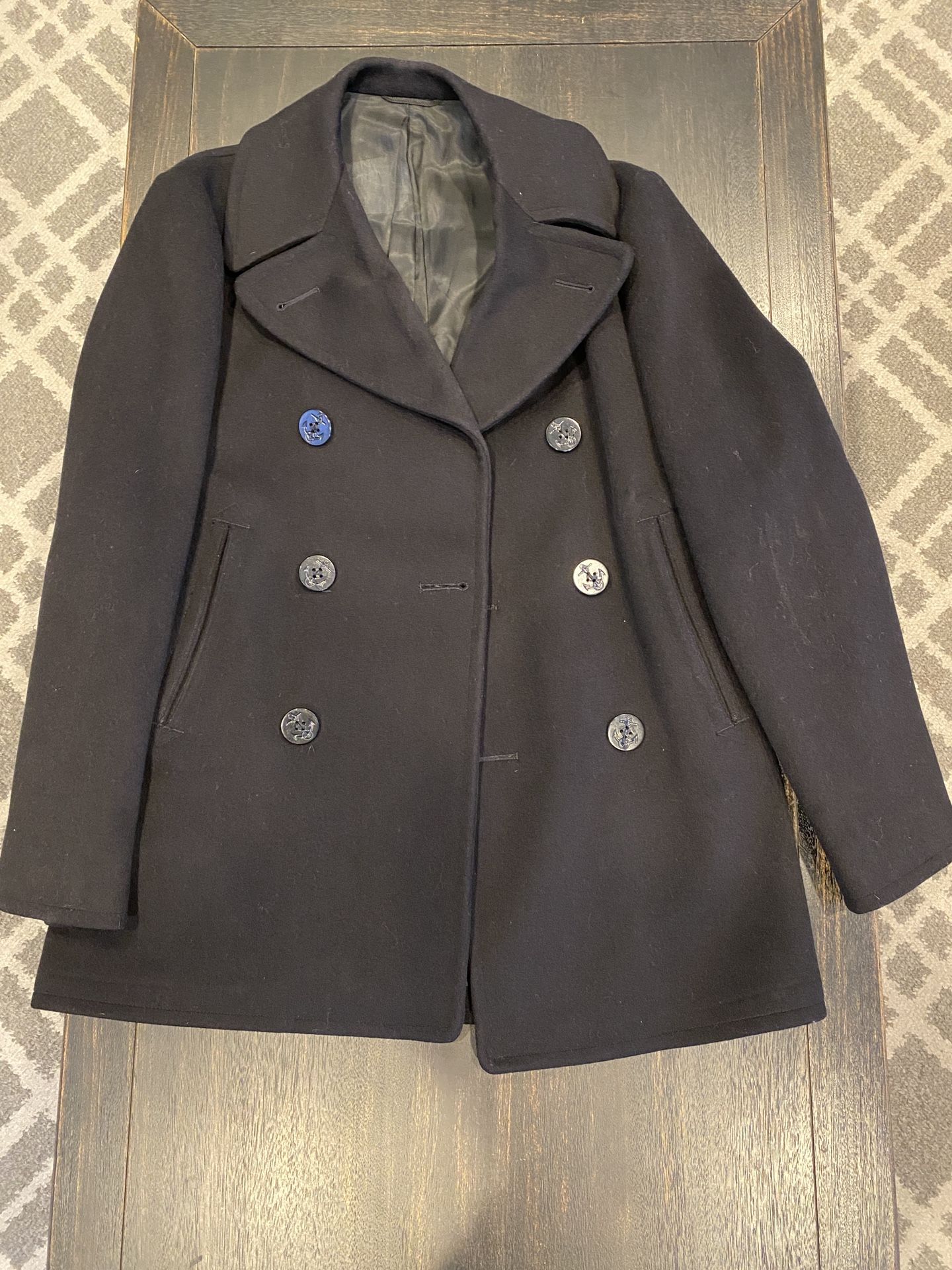 Authentic US Navy Peacoat. 100% Kersey Wool. Size: 36R Color: Dark Navy / Black