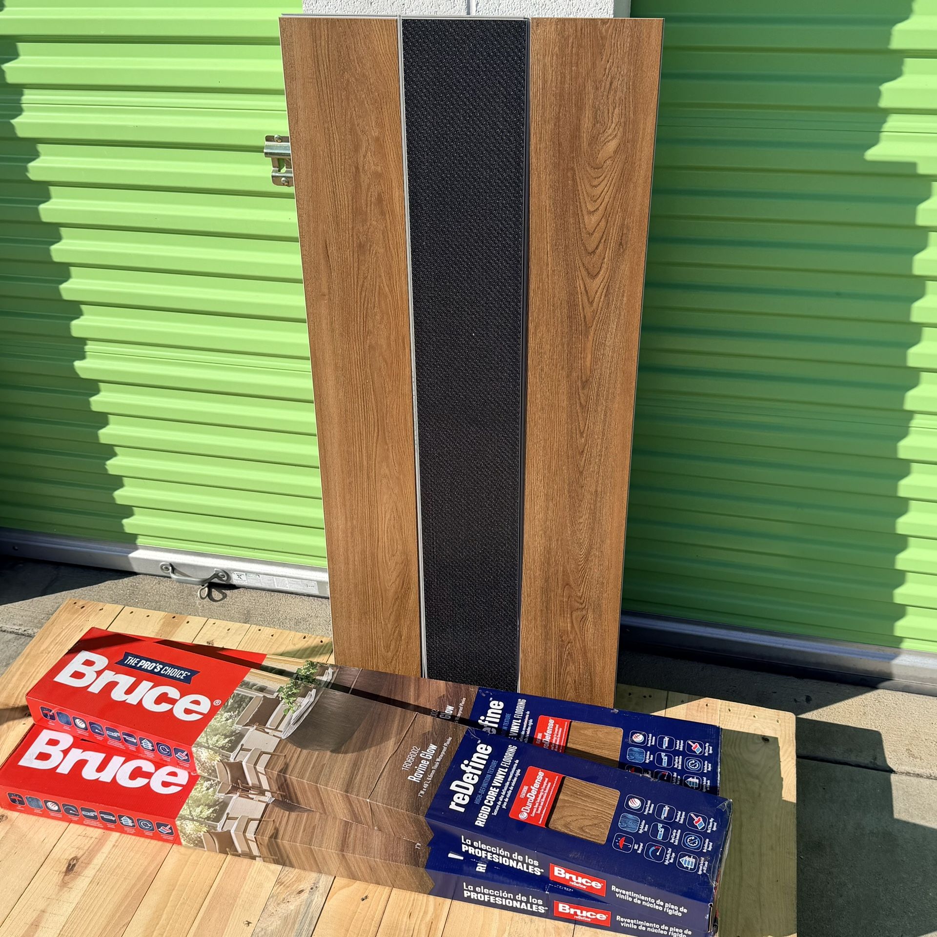 Bruce Ravine Glow waterproof vinyl plank flooring. Underlayment attached and easy click-lock installation. Each case covers 23.64 sq ft. Brand new, sealed boxes. Great modern color and very durable — perfect for any room, rentals, or remodels. Message for pickup.