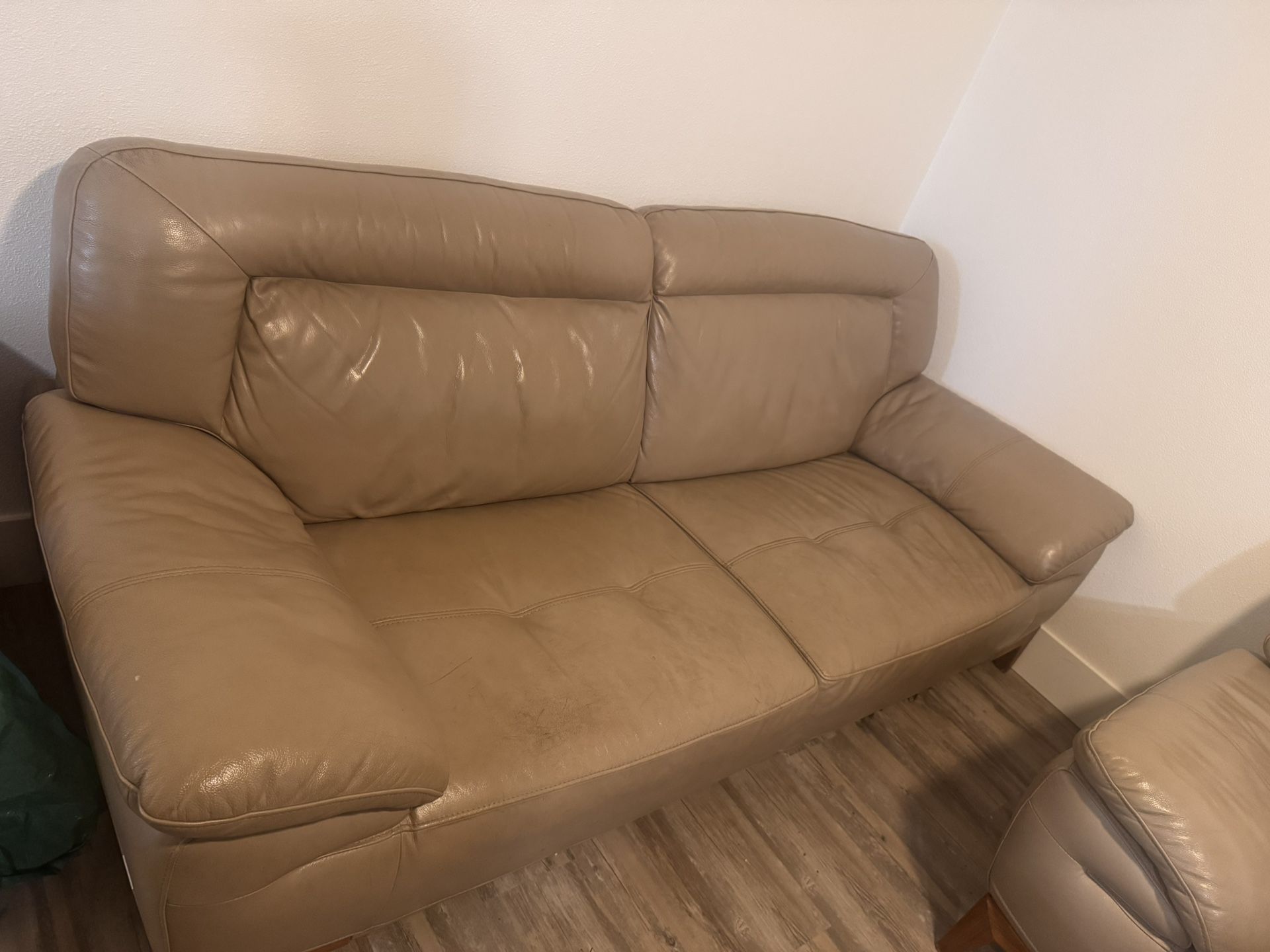 I have 2 leather sofas and a coffee table for 200 OBO need gone ASAP moving need gone by Saturday