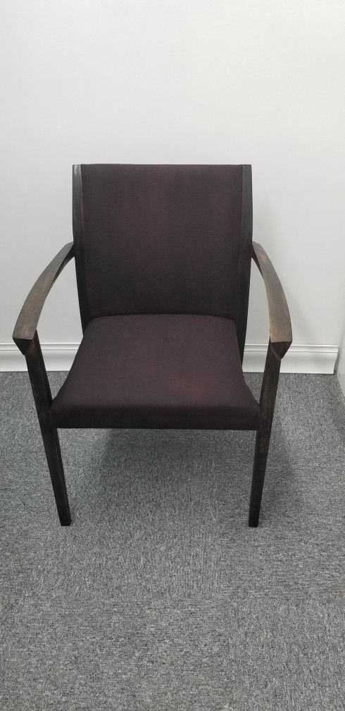 Desk chair . Great armed chair . Can be used for office desk or end table. In great condition. Wood arms and legs. 24" W. 33"H 16" D
