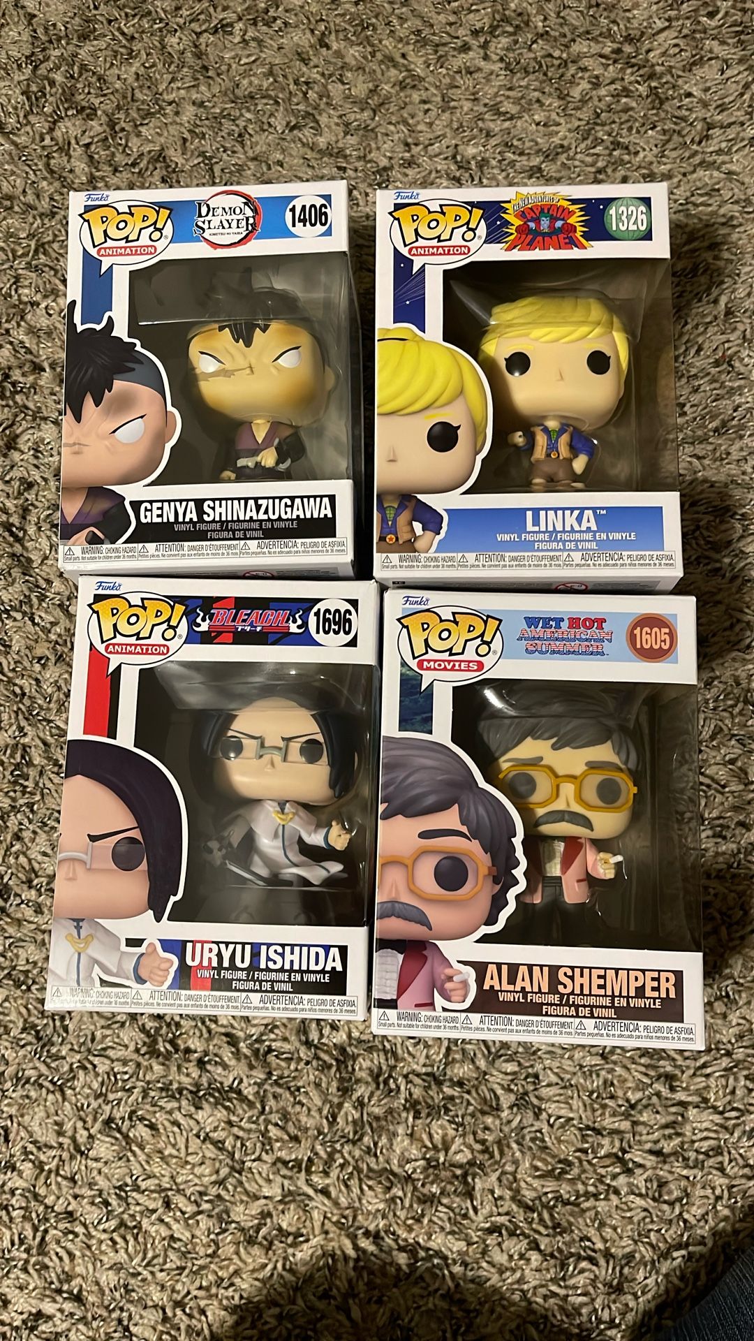 Funko Pop animation & movie figures Demon slayor Genya Shinazugawa The new adventures of Captain Planet Linka Bleach Uryu Ishida Wet Hot America Summer Alan Shemper All new in the box 10 each In Tacoma by hwy 7 & 512 Can meet at dollar tree 9830 pacific ave Tacoma 98444