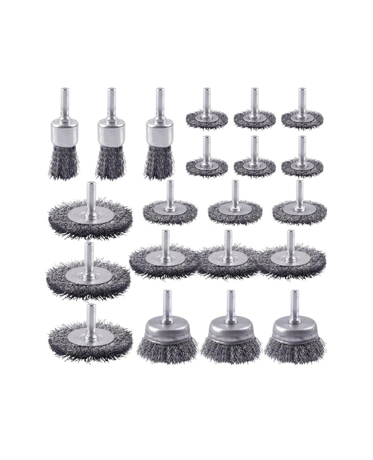 Rocaris 21 Pack Carbon Steel Wire Wheel Brush, Cup Brush, Wheel Brush, Pen Brush Set with 1/4-Inch Round Shank for Rust Removal, Corrosion and Scrub S