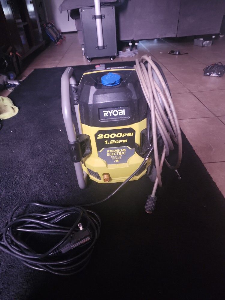 Ryobi power washer. 2000psi works perfectly fine. Dont have the wond for it no more can find some on Amazon dirt cheap. Comes with pressure line you see in photo