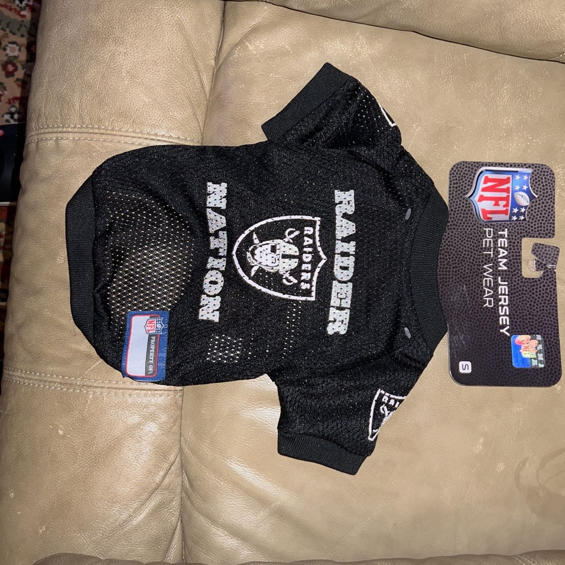 Never used raider nation jersey for small dogs. Size small.