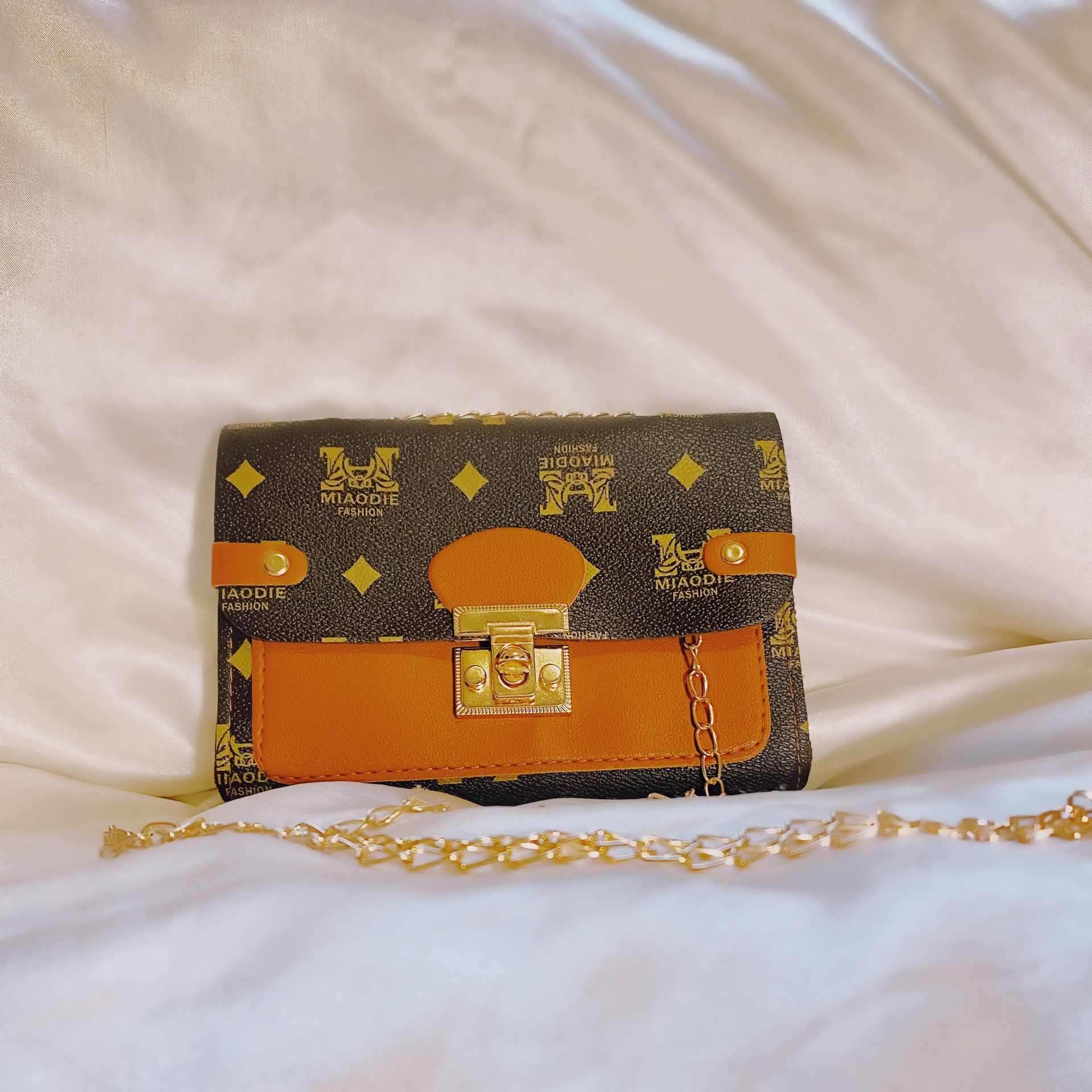 Brown orange and gold| small shoulder bag| one compartment| gold trim| womens| new