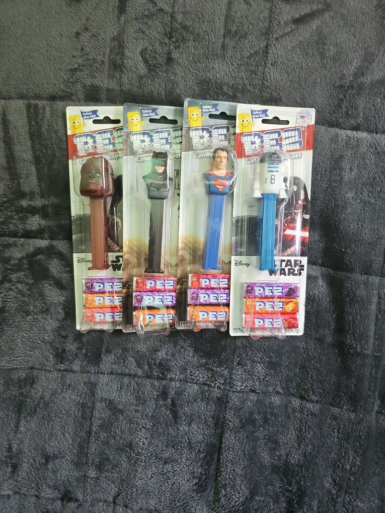 4 total PEZ dispensers New in the box Chewbaca, Batman, Superman, R2D2