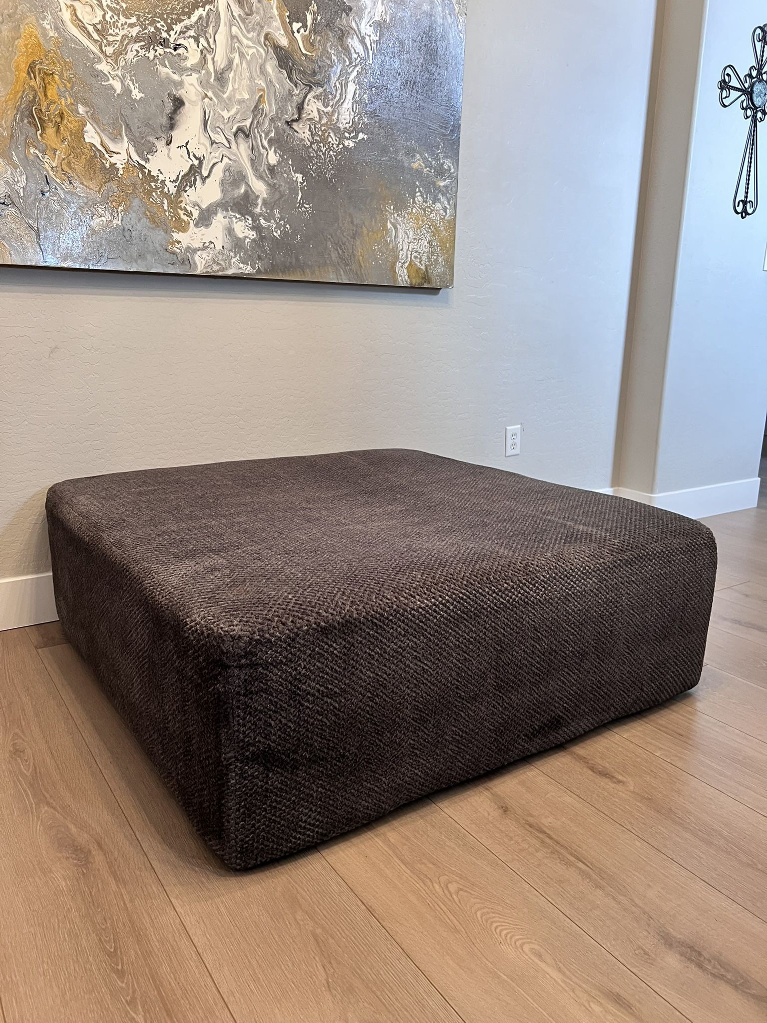 51” Oversized Charcoal Gray Chenille Sofa Ottoman- Jackson Furniture Mammoth Cocktail Ottoman in Smoke. This size ottoman currently retails for $515 plus tax, or even more on multiple websites! Gorgeous soft chenille fabric in a charcoal grey, smoke grey, charcoal gray color. So comfy and in near perfect condition! 51 width, 51 depth, 18 height Sofa ottoman, oversized ottoman, couch ottoman, coffee table, cocktail table, cocktail ottoman I am also selling multiple household items, artwork, home decor and furniture. Please check out my other listings! The more you buy, the more you save! About Jackson Furniture: Jackson Furniture Industries, founded in 1933 in Cleveland, TN, is a long-standing, family-owned US manufacturer specializing in affordable, comfortable upholstered seating. Operating 10+ factories with ~1,500 employees, they produce sofas, recliners, and sectionals under the Jackson and Catnapper brands Product Details Item Number 4376-28/1806-58 Product Type: Ottoman Brand: Jackson Style: Casual, Contemporary, Modern Material: Fabric, Polyester, Upholstered, Wood Finish/Color: Smoke