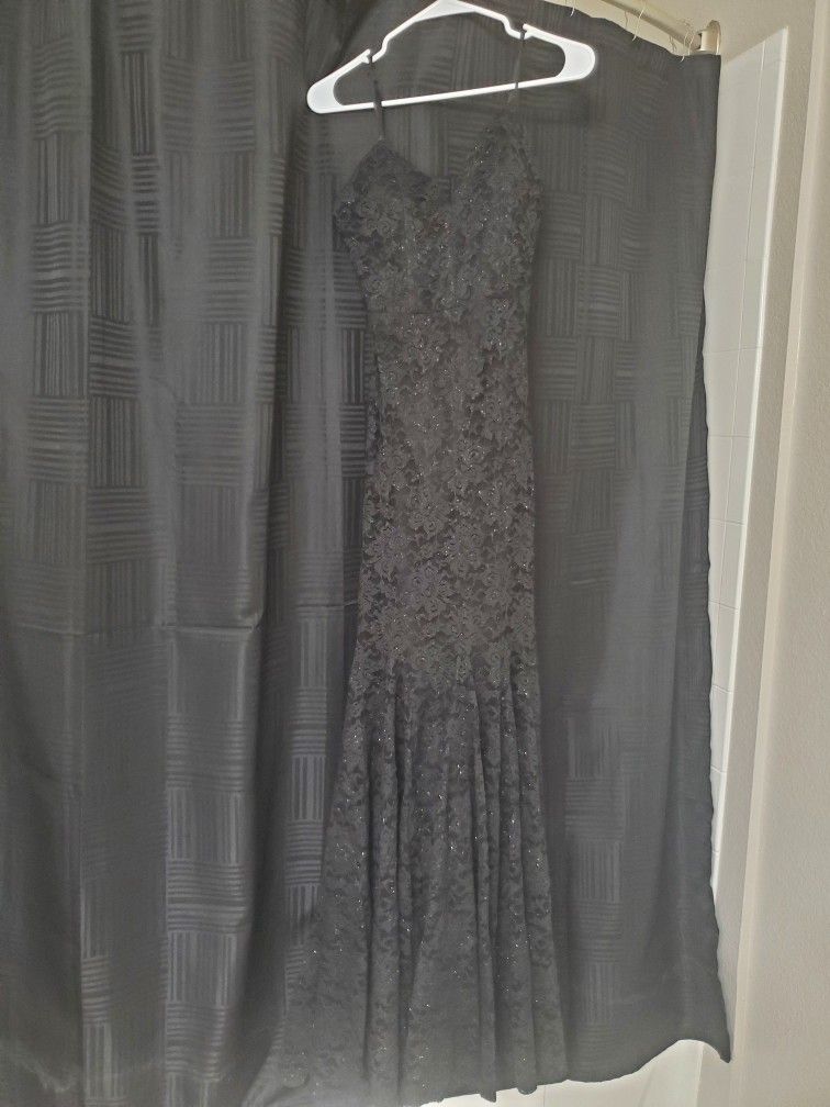 Elegant black floor-length mermaid gown from Windsor, featuring a fitted silhouette that flares at the hem. Designed with delicate spaghetti straps, a zip-up back, and intricate floral lace with subtle sparkle details throughout for a timeless, formal look. • Size: Small • Color: Black • Brand: Windsor • Floor-length • Mermaid silhouette • Floral lace with sparkle accents • Zip-up back • Spaghetti straps Perfect for prom, formal events, galas, or evening occasions. In great condition and ready to wear!