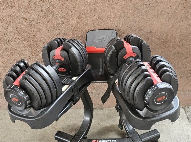 SEMI-NEW BOWFLEX DUMBELLS WITH STAN