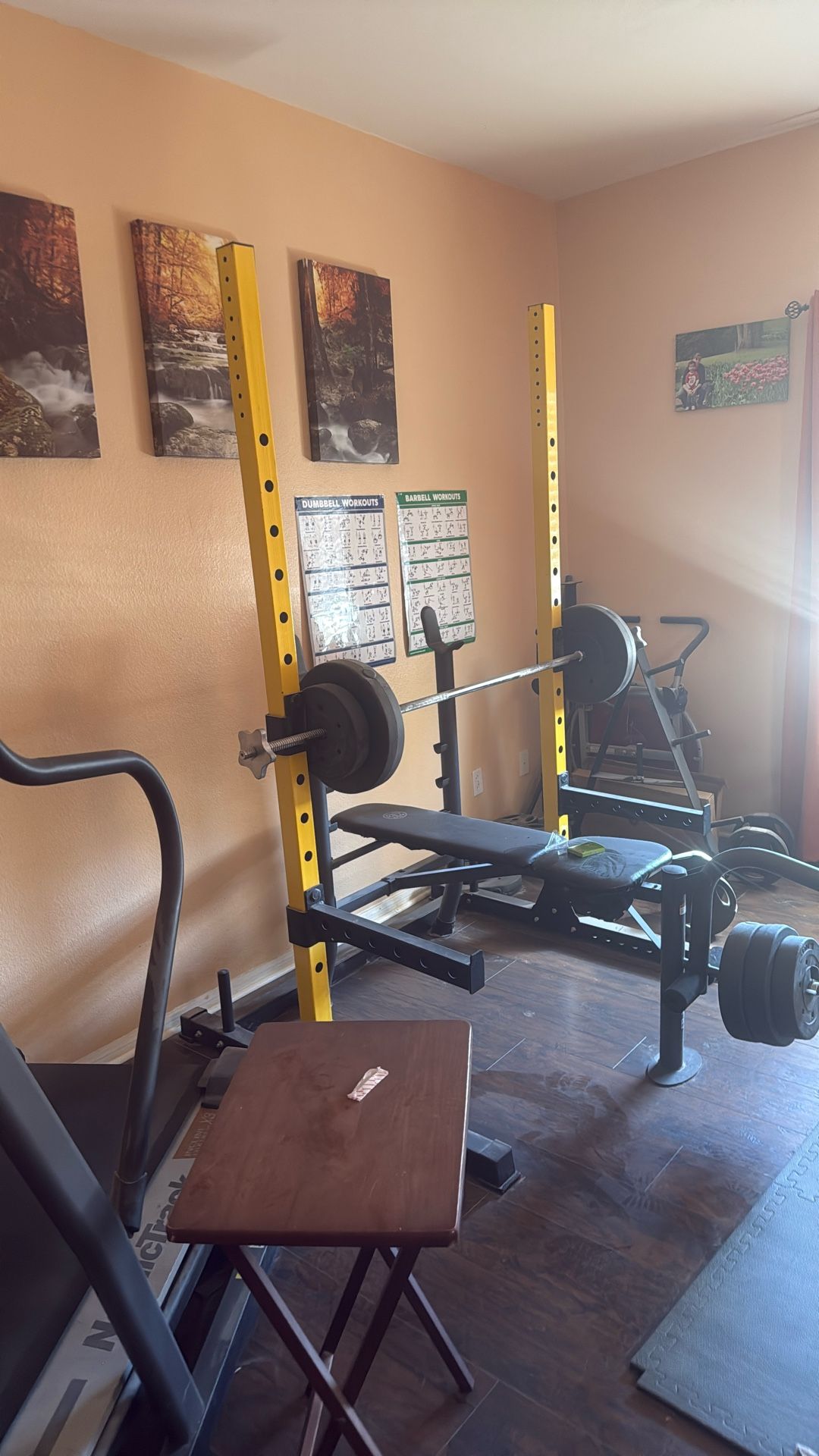 It is a squat rack and you could also use it to bench does not come included with weights or bench