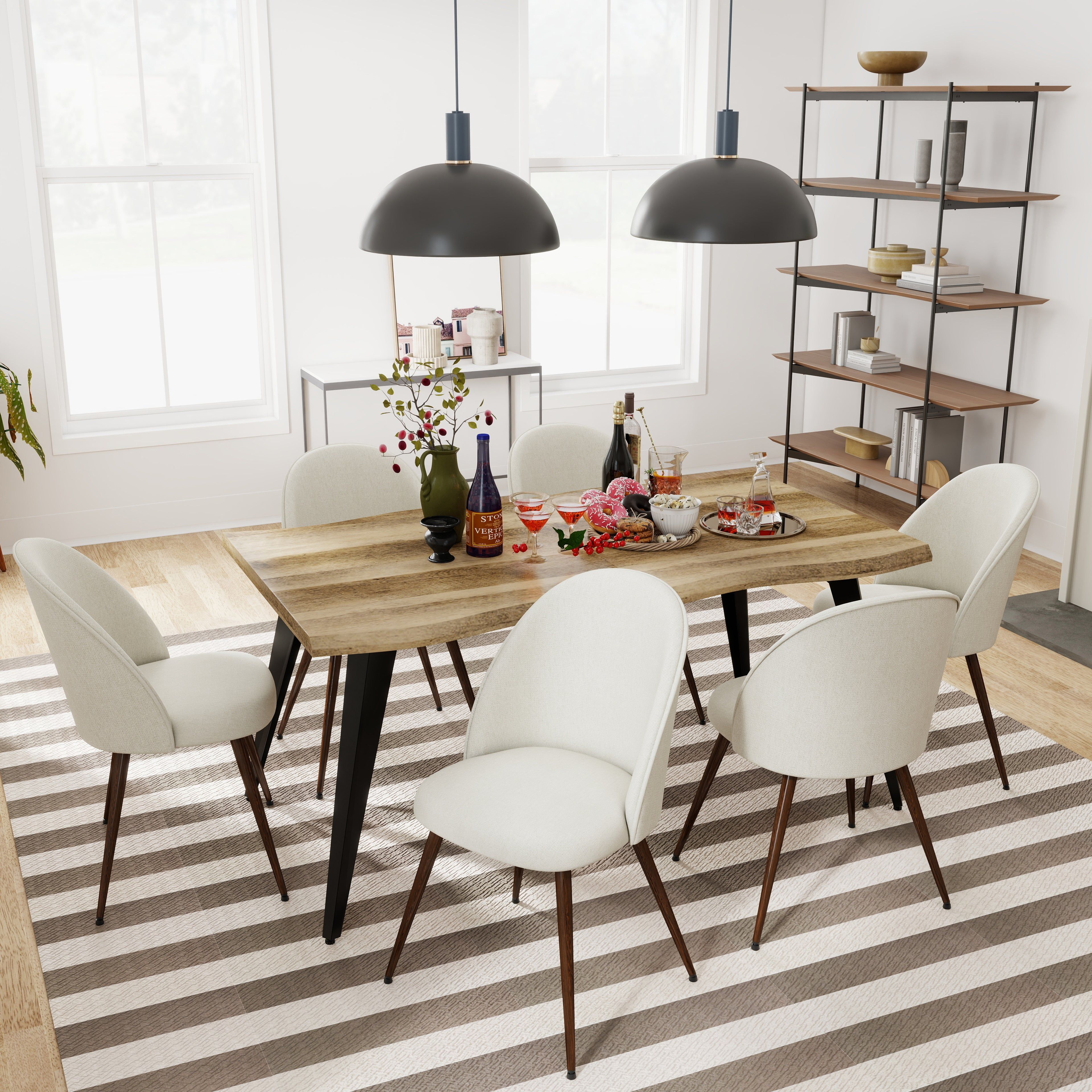 Gather in style with the Lancelot walnut dining set, featuring a spacious table and six ergonomic Haven chairs. Perfect for modern homes.