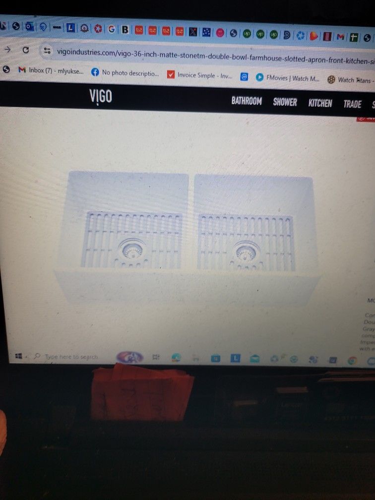Vigo 36" Matte Stone Double Farmhouse Slotted Apron Front Kitchen Sink
