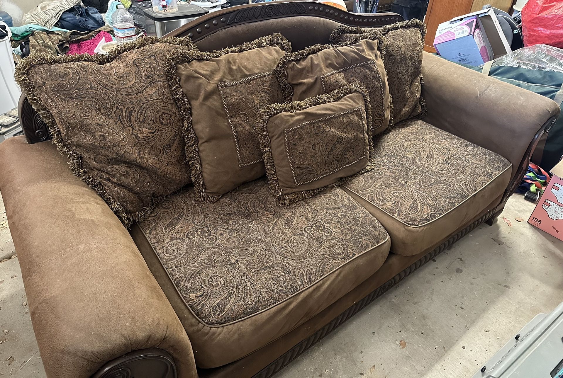 Matching sofa and love seat. Some wear on the wooden frame but could be covered with polish. Selling as a set only. Pick up in Buckeye. Yuma and Dean.
