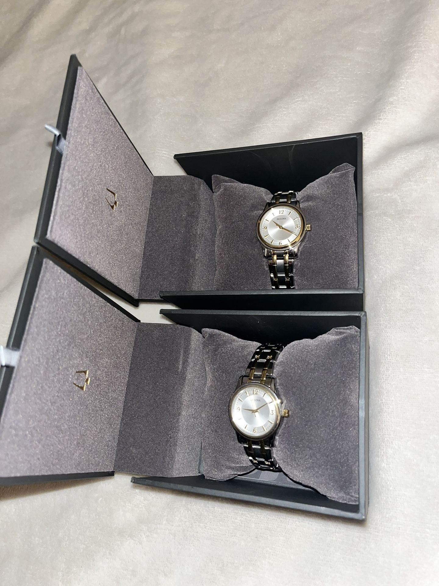 Selling two brand new Bulova watches as a set. Both have never been worn and come in their original Bulova boxes. • Authentic Bulova • Classic round faces with silver dials • Two-tone metal bands (silver with gold accents) • Gold-tone bezels and crowns • Quartz movement • Elegant, timeless style • Excellent, brand-new condition Price is for both watches — selling as a pair. $500 obo
