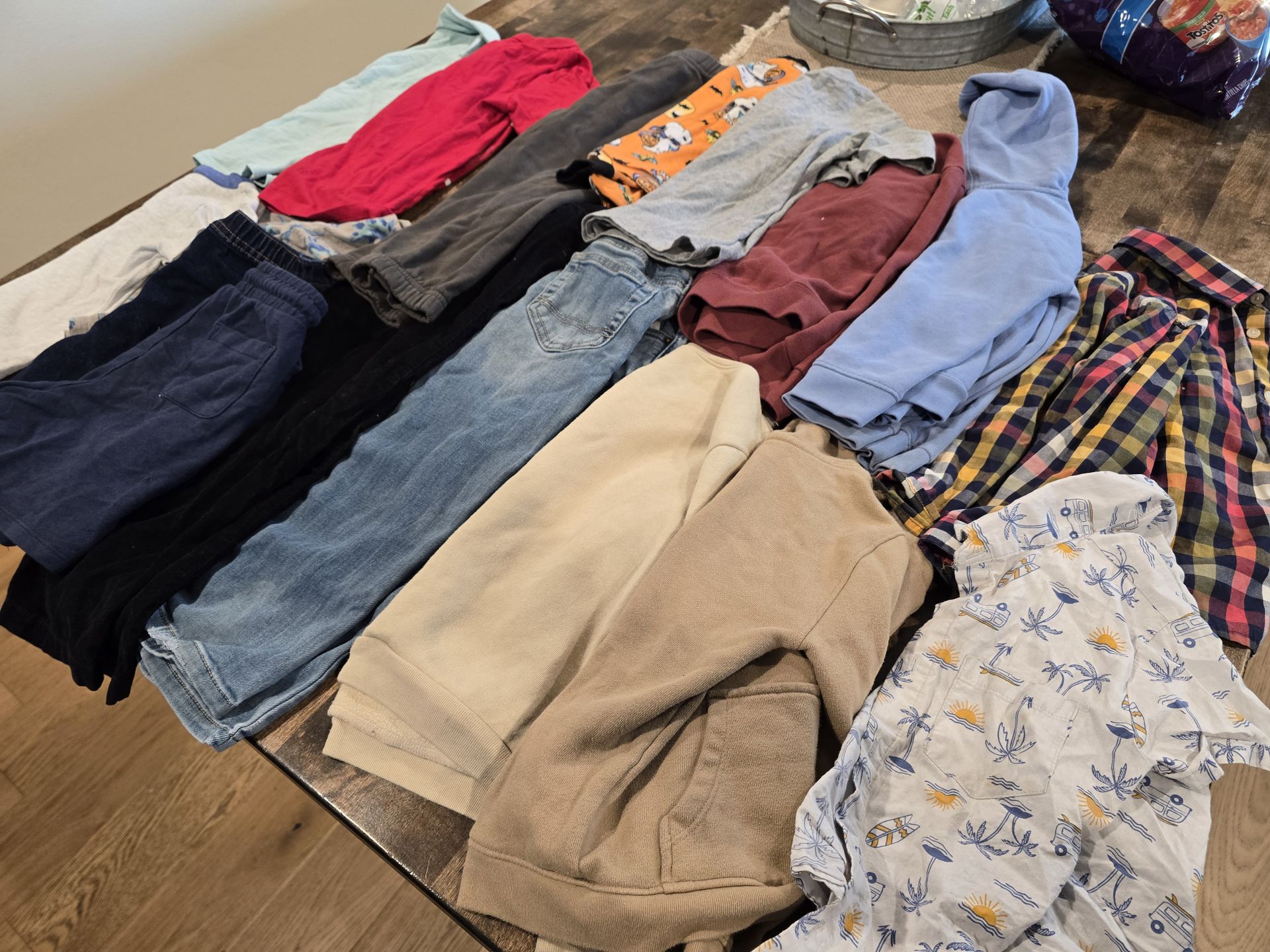Lot of Boys 4T/5T Clothes Lot for $10/all. 30 pieces, not selling separately. They have clear wear with some light staining. No rips. 15 Shirts. 6 Sweatshirts. 1 Jacket. 3 Pants/Sweats. 3 Shorts. 2 Pj's. I won't send more pictures or sell individually, thanks.