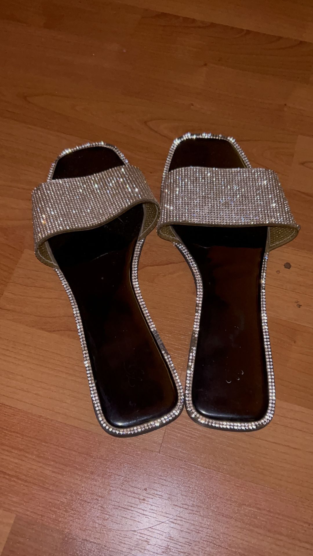 These are my little sister she hardly wore them like 3-4 times max yes there gems missing she just threw them around because mind you she 12 year olds & there Victoria secret hard sanalds in the size 8 in a half they were to big for her but she just insisted having them we got them for 35 dollars but like I said gems are missing cause she jus threw them around. She has many other shoes as well in good shape she just threw around.