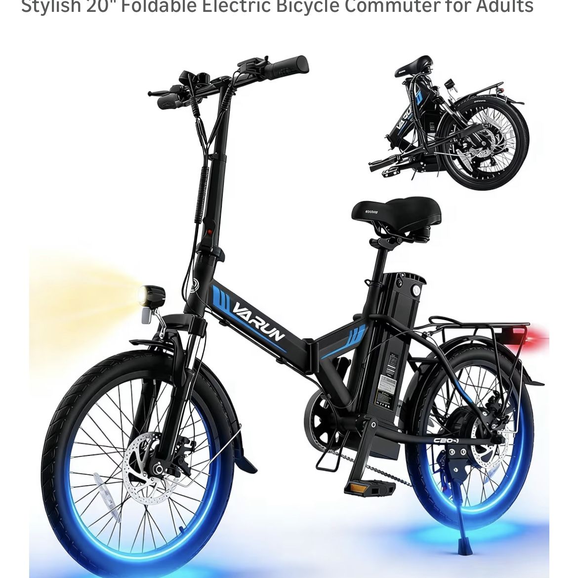 VARUN Electric Bike - Peak 750W Folding Ebike for Adults Up to 40 Miles 20MPH- 48V Removable Lithium-Battery- Stylish 20" Foldable Electric Bicycle Co