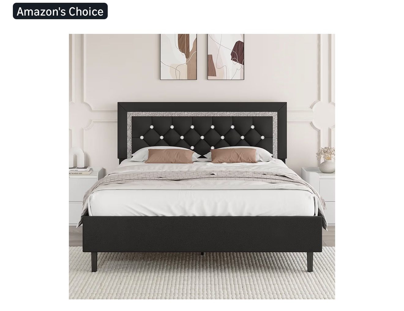 Bed frame has everything needed , although cons are no instruction book also is not in box just wrapped in plastic! - lines on bed are not glittery as in photo they are glossed . Other than that it is in perfect condition . ( MUST GO ASAP)