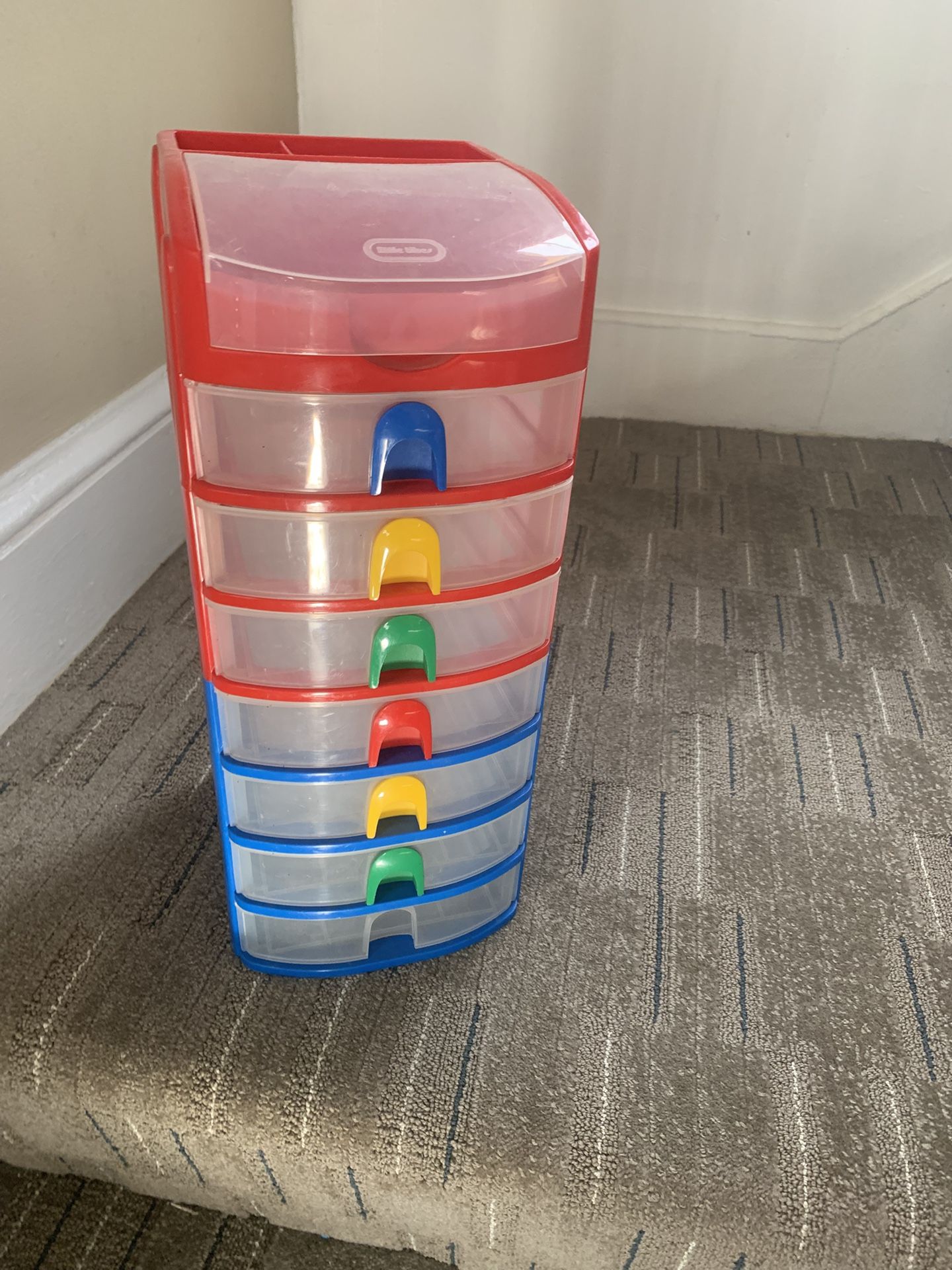 Vintage 2003 Little Tikes 7-Drawer Art Supply Organizer Red Blue Desk Storage